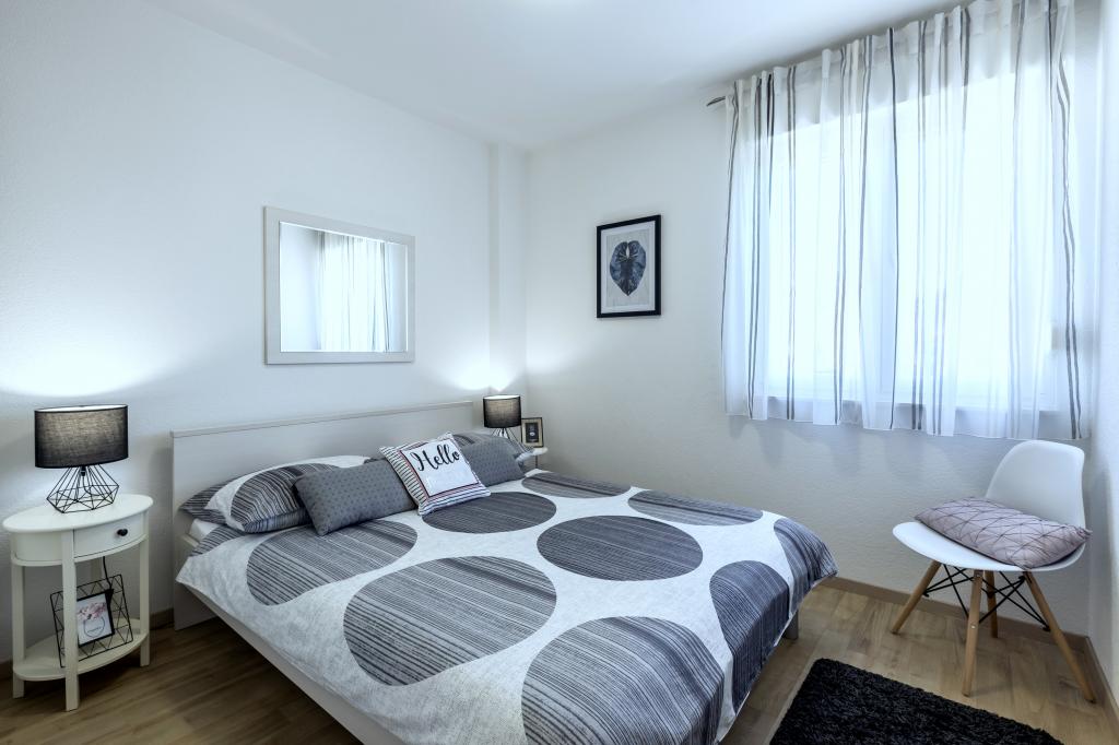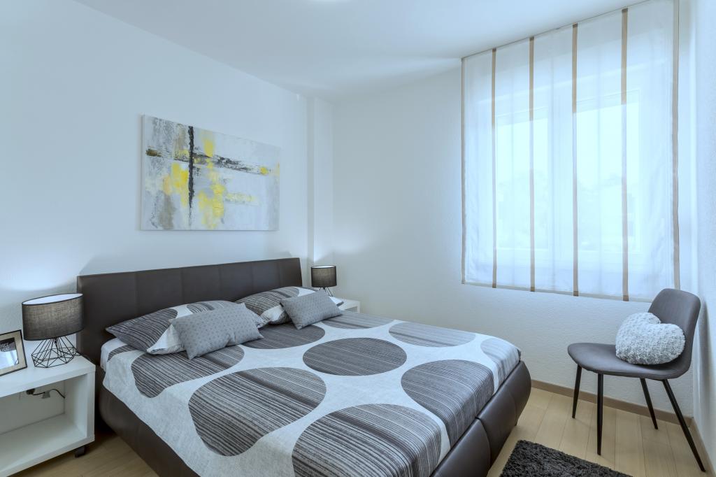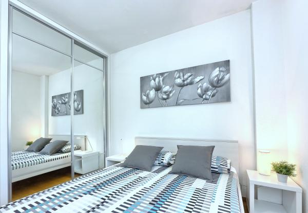 We were in early September for 9 nights in this great apartment. The pictures do not lie! The equipment, with washing machine was just great. Beds were very comfortable and clean! Like the rest of the apartment. The proximity to the sea is also great, you go out and in 10 seconds right on the water. We liked it very much! We would go back and recommend it.