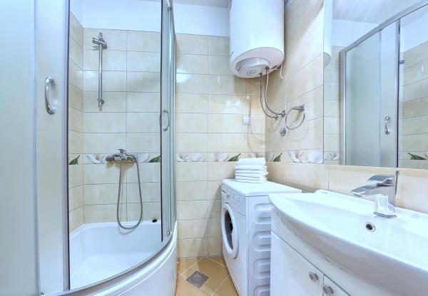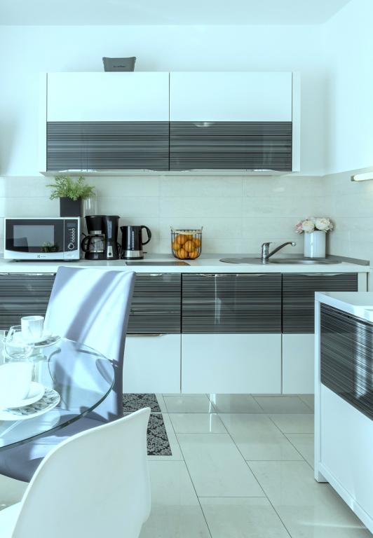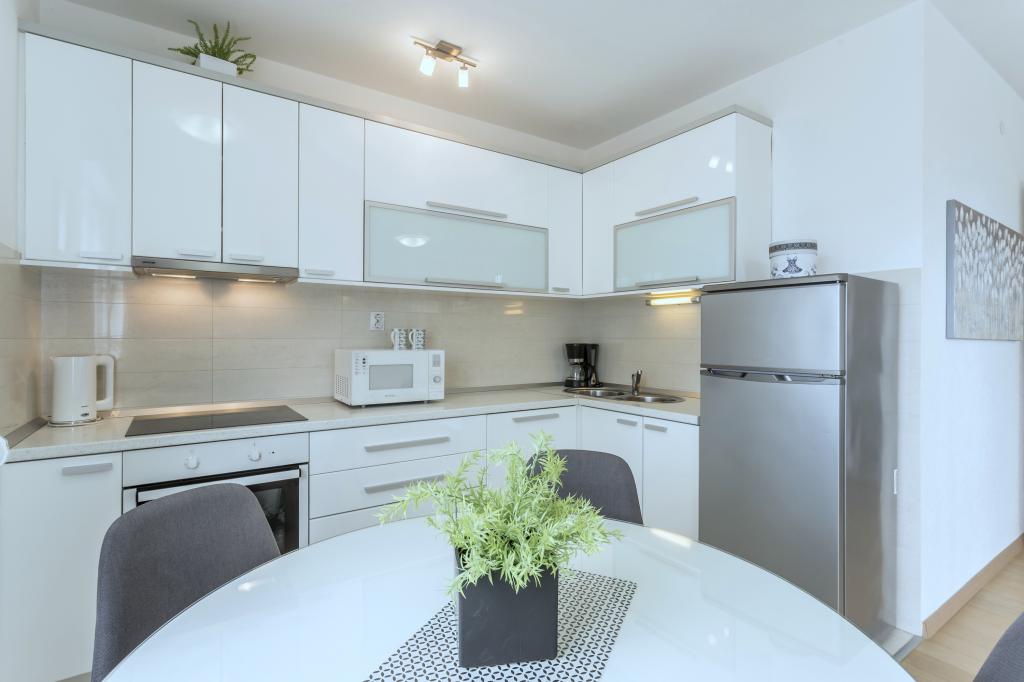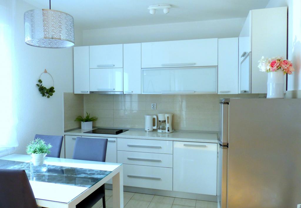 Beautiful apartment, not even a minute to the sea. Everything you need is nearby. Cafes, shops, post office, pharmacy. The owner is very kind and always available for any question. The apartment is very clean and spacious. The apartment had everything you needed. Washing machine and detergent, dishwasher and tablets. When we arrived, there was water and juice in the fridge, which was very nice to start with so we didn't have to go to the store right away. The apartment was also pleasantly cool. Rating 10/10 and I definitely recommend it.