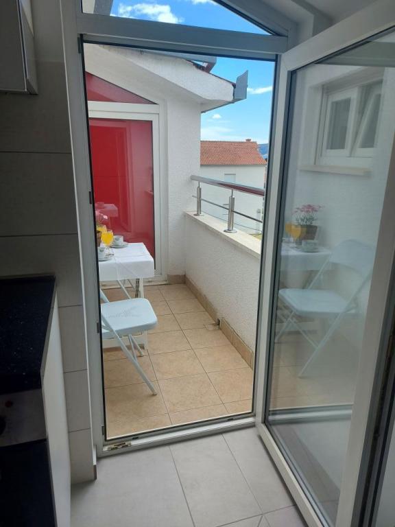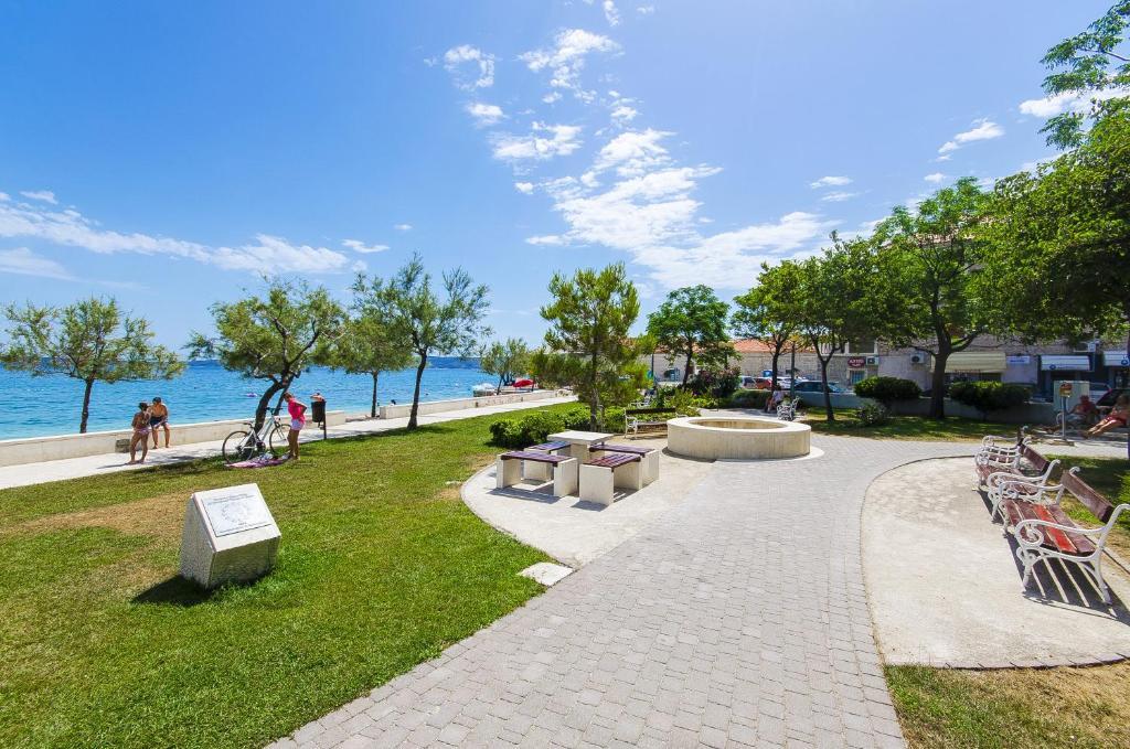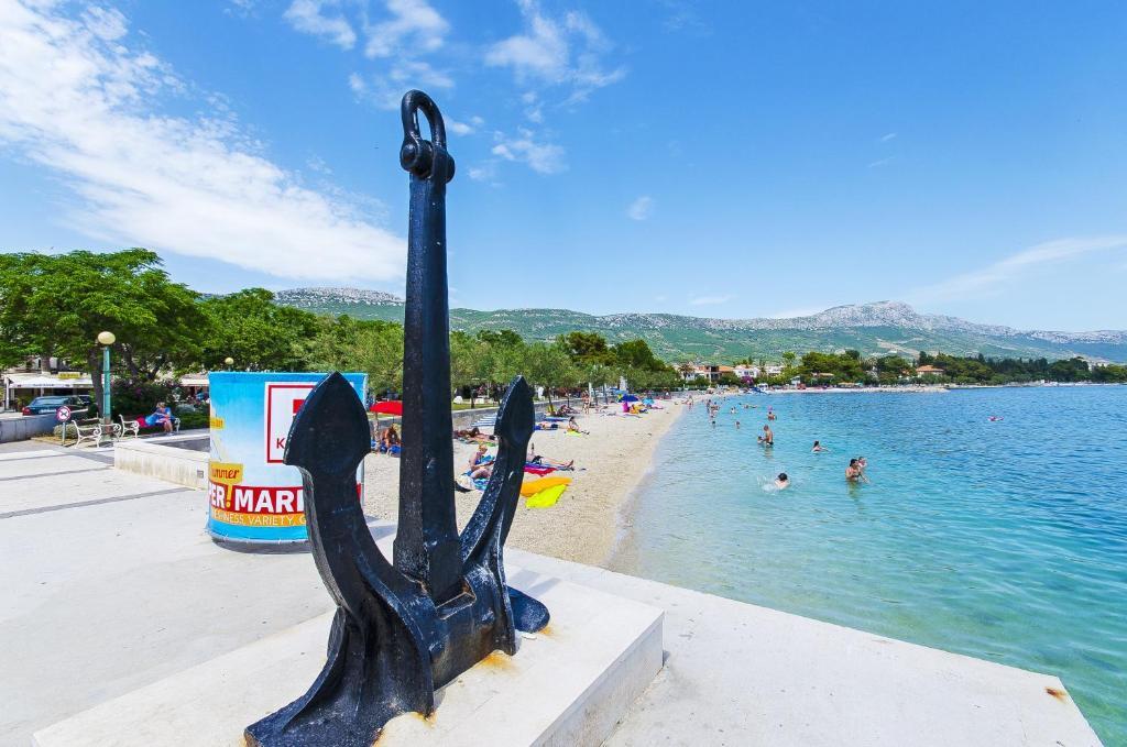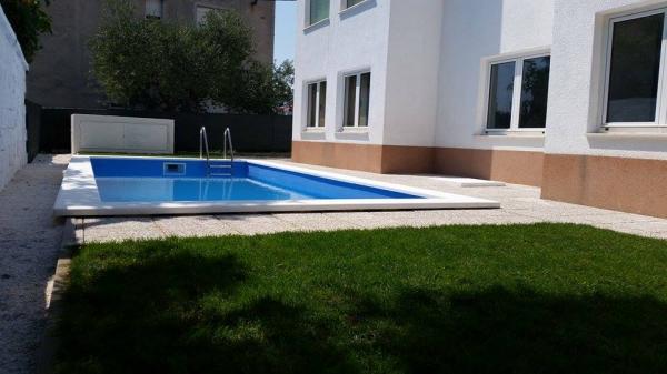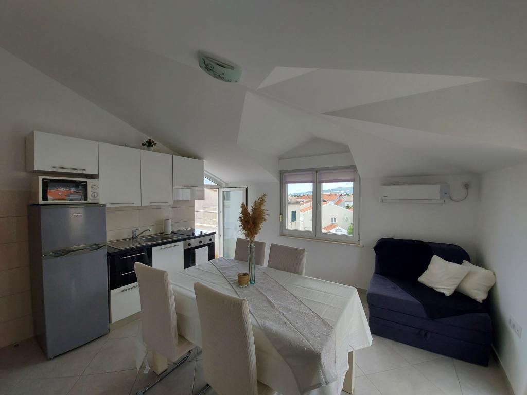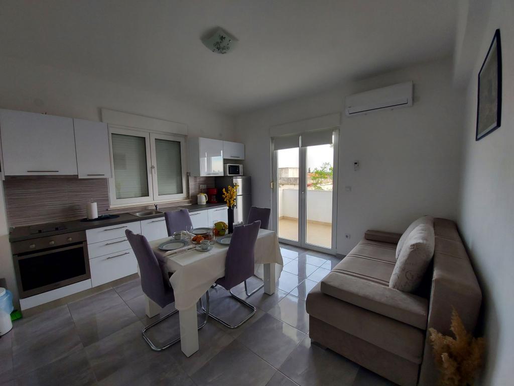 In the house are two apartments, evaluate apt. 1, which is perfect. It has two terraces, one with a sitting area overlooking the sea. The apartment is modern and clean. Air conditioning is not only in the kitchen, but if you leave the door to the room open, so it is enough. Free Wifi. The house stands on the village road, where traffic day and night, but our apartment was directed to the other side, so nothing to disturb us. Not far away is trade. Super is also a swimming pool with sun loungers and shower. The sea is about 200 m, but instead we went a little farther, there was a better entry into the water. The closer the beach were in a sea of larger stones. Otherwise, both pebble beaches. In the vicinity are several restaurants. Along the beach walk to the historic part of town, something for romantics. There are also shops, restaurants, bike rental. On a trip is a short walk to Split and Trogir. Close to Split airport, so planes flew over us, but that we are not even listening. Mr. owner Zoran is very friendly and helpful. Leave us very much. I think the apt. 1 deserves 4 stars. I like to recommend it to everyone :-)