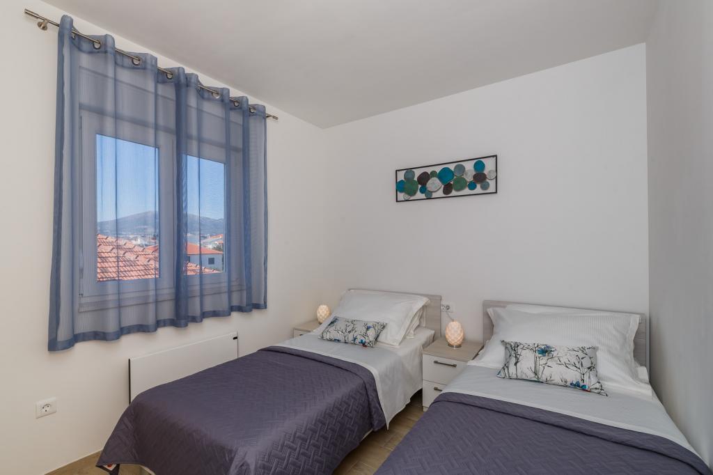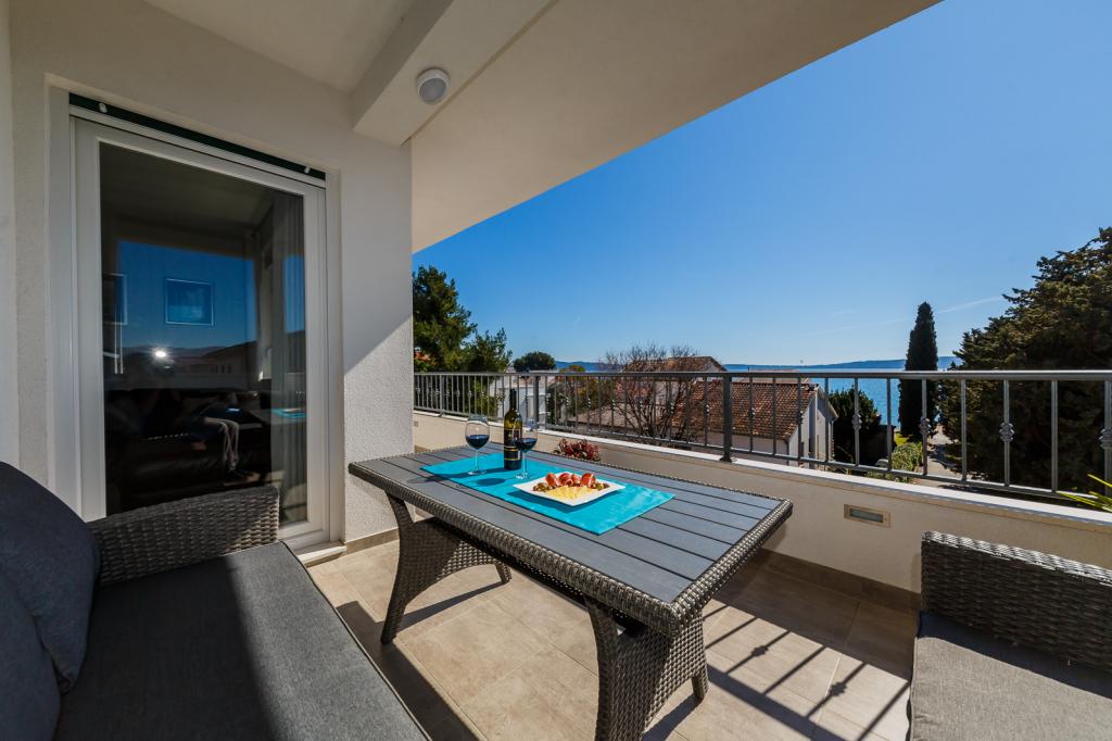 Apartment new, neat, well-furnished and equipped with everything you need. View from the terrace of the sea and the island of Ciovo. Very close to the beach. The owners are very nice and helpful!
