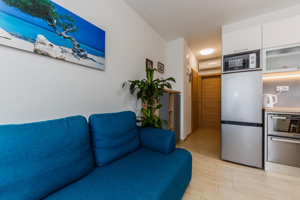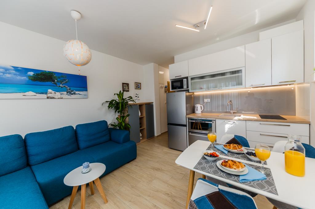 We (two adults and two children, ages 7 and 11) spent two wonderful weeks in Damir and Tina's apartment. We received a warm welcome upon arrival, and everything we needed was explained to us. Cold drinks were already waiting for us in the fridge. Damir was easily reachable via WhatsApp for any questions or anything else. The apartment was super clean and we had everything we needed. A washing machine in the bathroom and everything you could possibly need in the kitchen. Smart TV, WiFi, and air conditioning were simply fantastic. The view from the balcony is simply fantastic. Straight ahead, you have a view of the sea, and to the right, you can see the mountains behind which the sun sets in the evening. I already miss the view. All the shops are within walking distance, and the beach is just a few meters away. That's what makes vacations fun. We felt very comfortable! The evening before our departure, Damir and Tina came by to say goodbye. Damir and Tina, thank you so much for letting us spend our vacation with you. Keep up the good work! Everything was just as you would wish, and we felt right at home. We can only recommend the apartment
