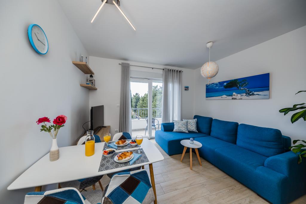 Staying in the apartment A4 + 1, we are very pleased with the stay, the apartment is equipped with everything you need, new, clean and fresh. Beautiful view from the terrace, which is the greatest advantage of the apartment. The owners were very polite and helpful. 100% recommend