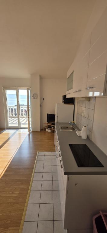 The apartments are located in a small and quiet fishing village of Klenovica, an ideal place to spend a relaxing holiday with your family. All apartments are equipped with air conditioning, a private kitchen, a bathroom and large terraces with a beautiful sea view. The apartments are only a 2-3 minute walk from the main beach. The beach is mostly pebble, but there are also rocks and concrete shores. . Near the apartments there are shops, a post office, a cafe, restaurants with fish specialties, a pizzeria, a playground. . There is free private parking within the building!
