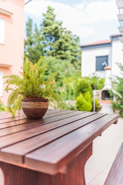 In the village of Klimno, a house with 4 apartments in a quiet and sunny location, in a cul-de-sac. Distance from the sea 200 m. The beaches are pebble and rocky. For shared use of plots of 400 m2. Available outdoor shower, sunbeds, grill, terrace 60 m2, table and bench. 1 parking space per apartment. Apartments Fenix 1 and Fenix 2 are located on the upper ground floor, and apartments Fenix 3 and Fenix 4 are on the first floor.