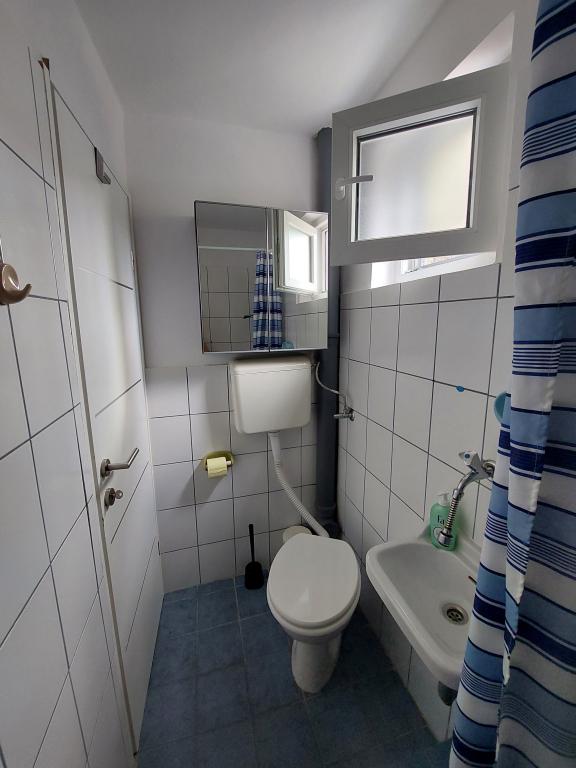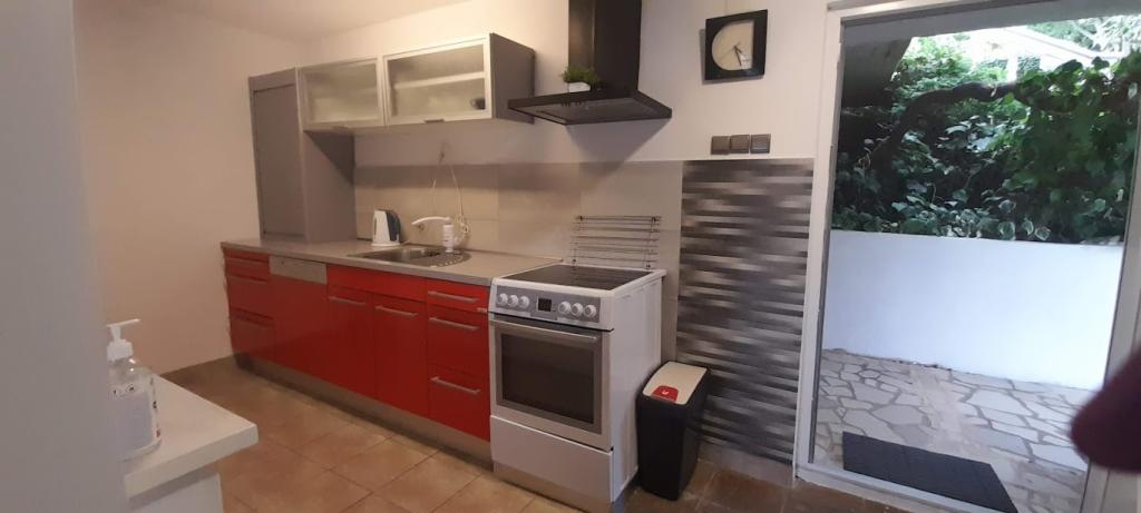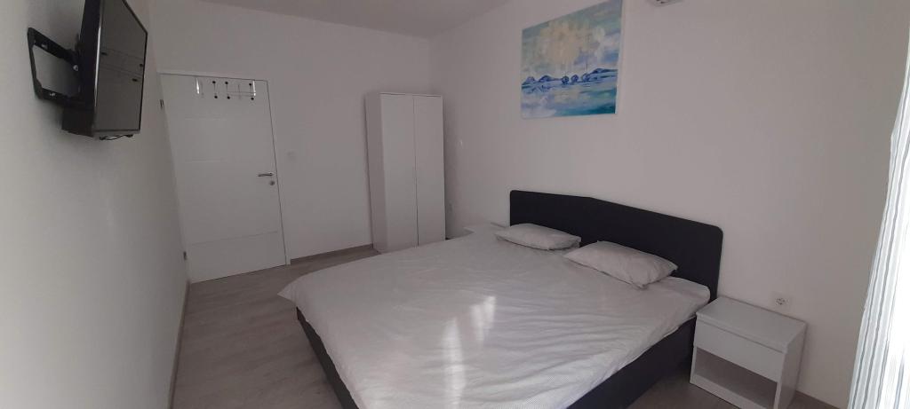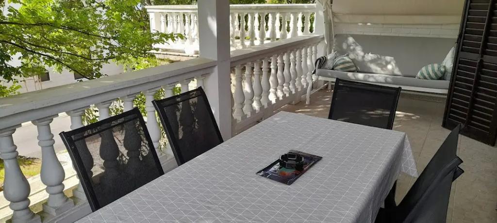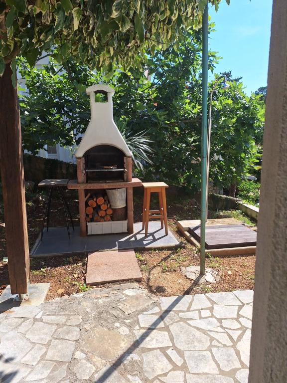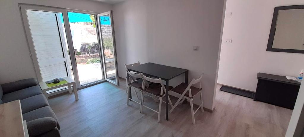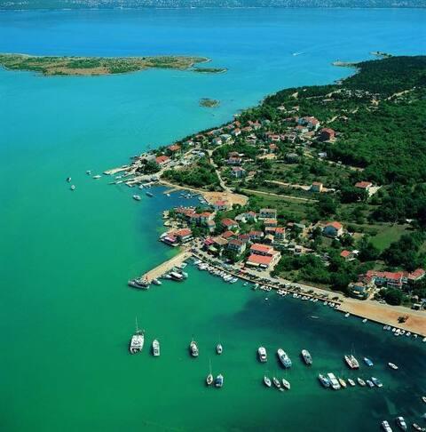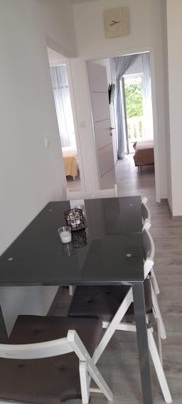 Our house in Klimno in the Soline bay, known for its healing mud and the Biserjuka cave, consists of a studio apartment for 2 people on the ground floor with a 20m2 terrace and an apartment on the 1st floor with a separate entrance and 2 terraces for 4 people with 3 stars in a quiet place surrounded by nature. We have a garden with a wood-burning barbecue that you can use for free and an outdoor shower. We are 250 m from the sea, The large apartment has an entrance hall, a bathroom with a large shower, 2 bedrooms each with a TV, air conditioning and access to a terrace with a table and chairs for seating and sun loungers, a kitchen with a living room with access to another terrace with seating furniture. The studio apartment of 50m2 has a small bathroom and a terrace with a table and chairs and a sun lounger. The kitchens in both apartments have a refrigerator, freezer, microwave, glass ceramic hob, hood, toaster, kettle, coffee maker, all cutlery, hairdryer. WIFI is free. Pets on request. Free use of bed linen, towels, air conditioning.