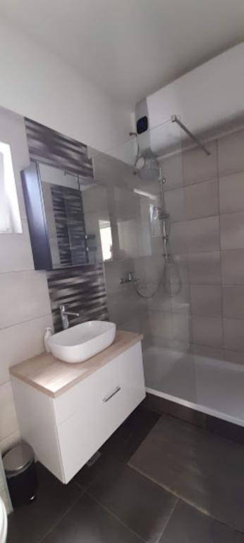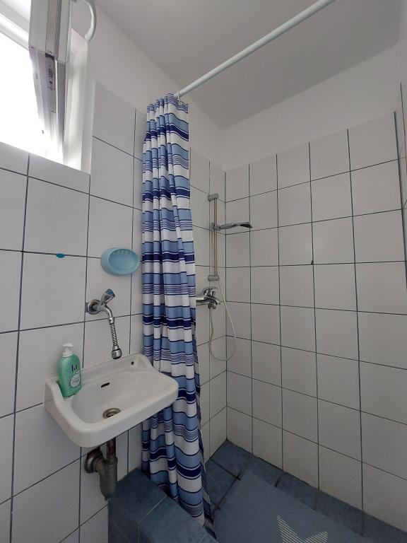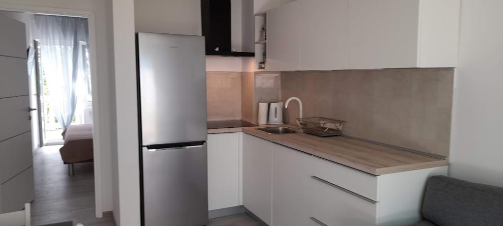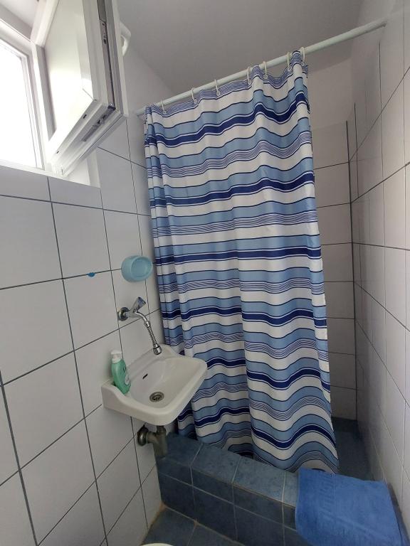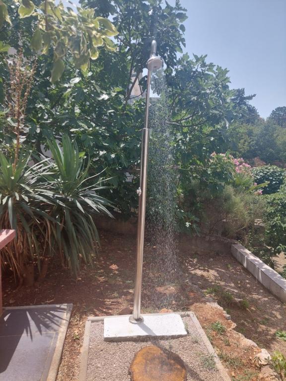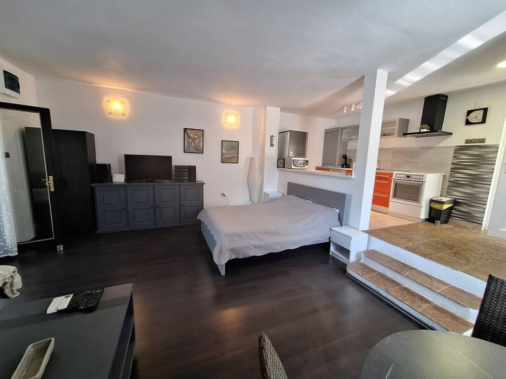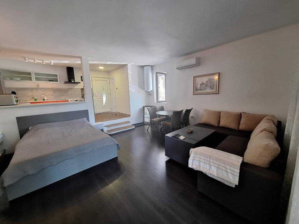 Our house in Klimno in the Soline bay, known for its healing mud and the Biserjuka cave, consists of a studio apartment for 2 people on the ground floor with a 20m2 terrace and an apartment on the 1st floor with a separate entrance and 2 terraces for 4 people with 3 stars in a quiet place surrounded by nature. We have a garden with a wood-burning barbecue that you can use for free and an outdoor shower. We are 250 m from the sea, The large apartment has an entrance hall, a bathroom with a large shower, 2 bedrooms each with a TV, air conditioning and access to a terrace with a table and chairs for seating and sun loungers, a kitchen with a living room with access to another terrace with seating furniture. The studio apartment of 50m2 has a small bathroom and a terrace with a table and chairs and a sun lounger. The kitchens in both apartments have a refrigerator, freezer, microwave, glass ceramic hob, hood, toaster, kettle, coffee maker, all cutlery, hairdryer. WIFI is free. Pets on request. Free use of bed linen, towels, air conditioning.