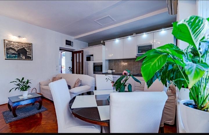 Luxuriously and fully equipped apartment for 4 people is located right next to the beach and promenade. The Old Town is located seven minutes from the apartment. The apartment has a terrace overlooking the sea. The apartment is located first row to the sea and is close to all amenities, and far enough away to avoid noise from the road. The apartment is suitable for four people, and parking space is provided in the local garage, which is located a few minutes from the apartment. The apartment has 68 m2 and is suitable for 4 people.