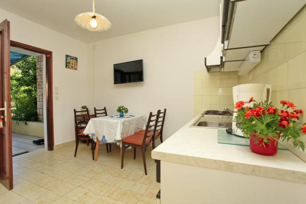 Apartments CEBALO are located deep hidden in the picturesque bay of Vrbovica, about 4 km from the center of the town of Korčula [see location]. A few houses in the bay, surrounded by wooded hills and a low-traffic local road above the terraced apartments - houses, offer guests the peace needed for a unique vacation. The apartments are 10 m. from a "private" small-pebble beach, which, protected from strong winds and with a gradual depth of the sea, is an ideal place for children to swim. Above the apartments, on the road, guests have access to a private covered parking lot, and at sea a bridge for mooring boats. The apartments contain information and route maps about restaurants and shops about 1 kilometer away, as well as excursions, boat lines, a doctor, evening events and parties in the town of Korčula, as well as the possibility of renting a bicycle, moped, car and boat, and using a canoe, boat, beach chairs, umbrellas and eco-friendly local products. The apartments are equipped with all necessary equipment and accessories for living.