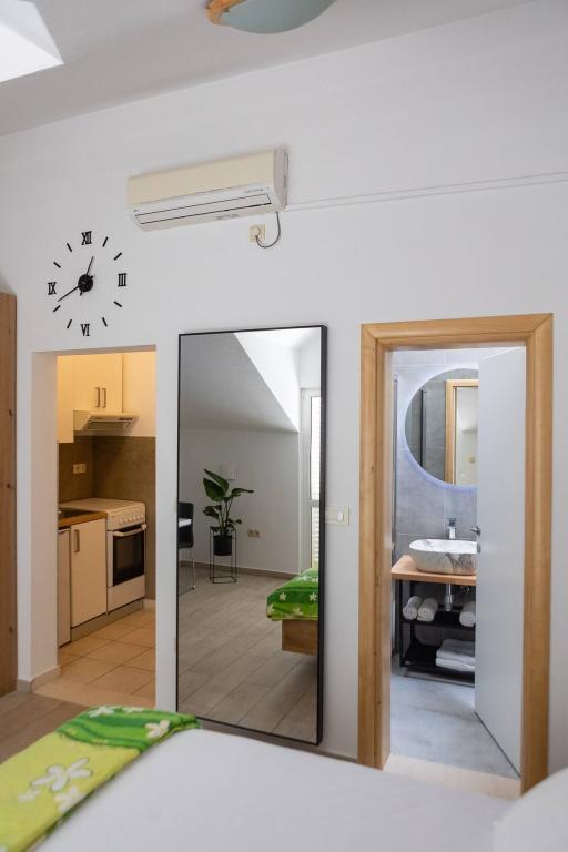 two years in a row we stayed and certainly will go there again! Without a doubt! Perfect location, everything clean, not at 2 minutes, the town center is just 5 minutes walk, fresh figs (if you are there in August), which you can buy in the shop just below the apartments ... great .... There is nothing to add nor take away! and lady among (the landlady) says excellent rozata :-)