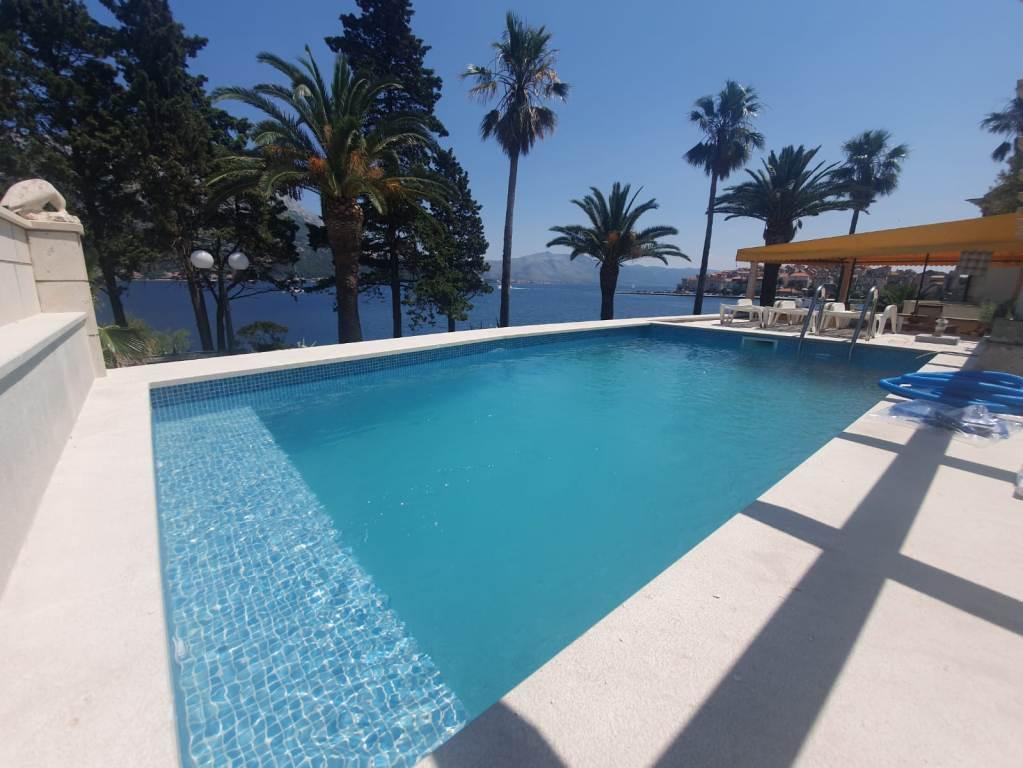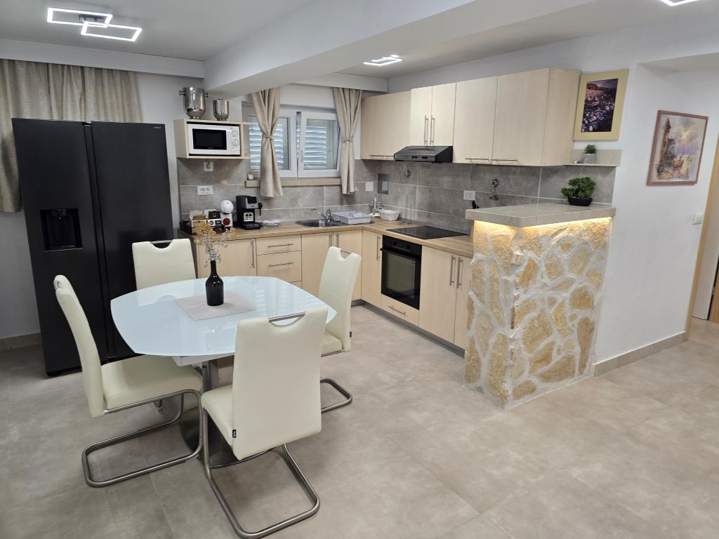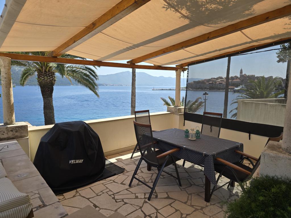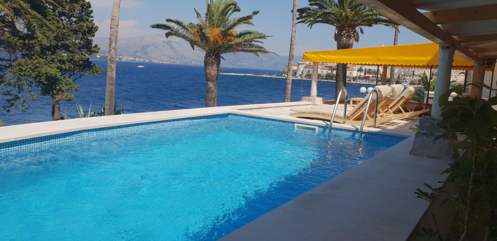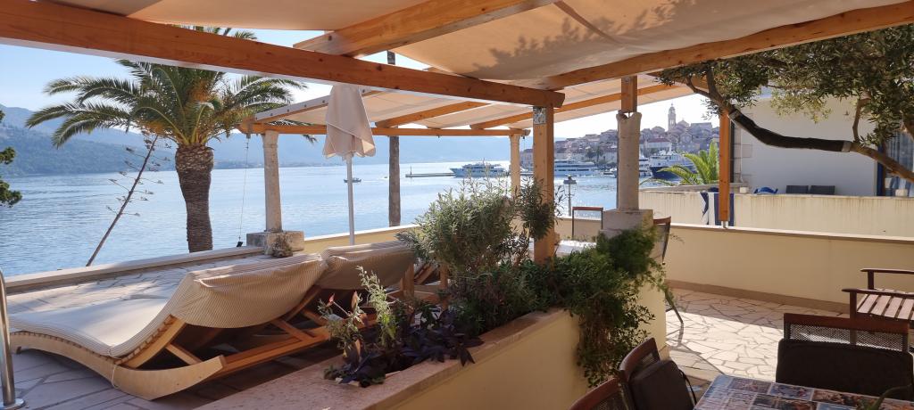 Apartment ID 759 has 86 m2. Luxuriously furnished and located in a beautiful part of the town of Korcula by the sea. The apartment has its own swimming pool and two large terraces and a sunbathing terrace. The apartment has absolutely everything you need for a vacation. Two air conditioning units, a large bathroom, two TVs, a nice comfortable space, two rooms and you have your own parking space for your vehicle. You are literally 5 minutes walk from the city center and 2 minutes from the beach. Barbecue on the terrace for your gastronomic pleasure. The apartment has a washing machine and dryer, dishwasher, two coffee machines, toasters, juice makers, etc. Fully and modernly equipped apartments in a quiet area of the town of Korcula, located first row to the sea; The facility is located 5 minutes walk from the city center and the beach and parking are right in front. Apartments and rooms ID 760 and ID 761 and rooms ID 5589 and ID 5599 are luxurious. The terrace at the back is also covered with a pergola and canvas. You have your own parking lot. Parking for vehicles is only for apartments.