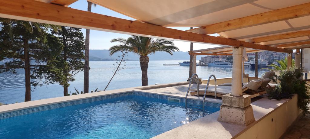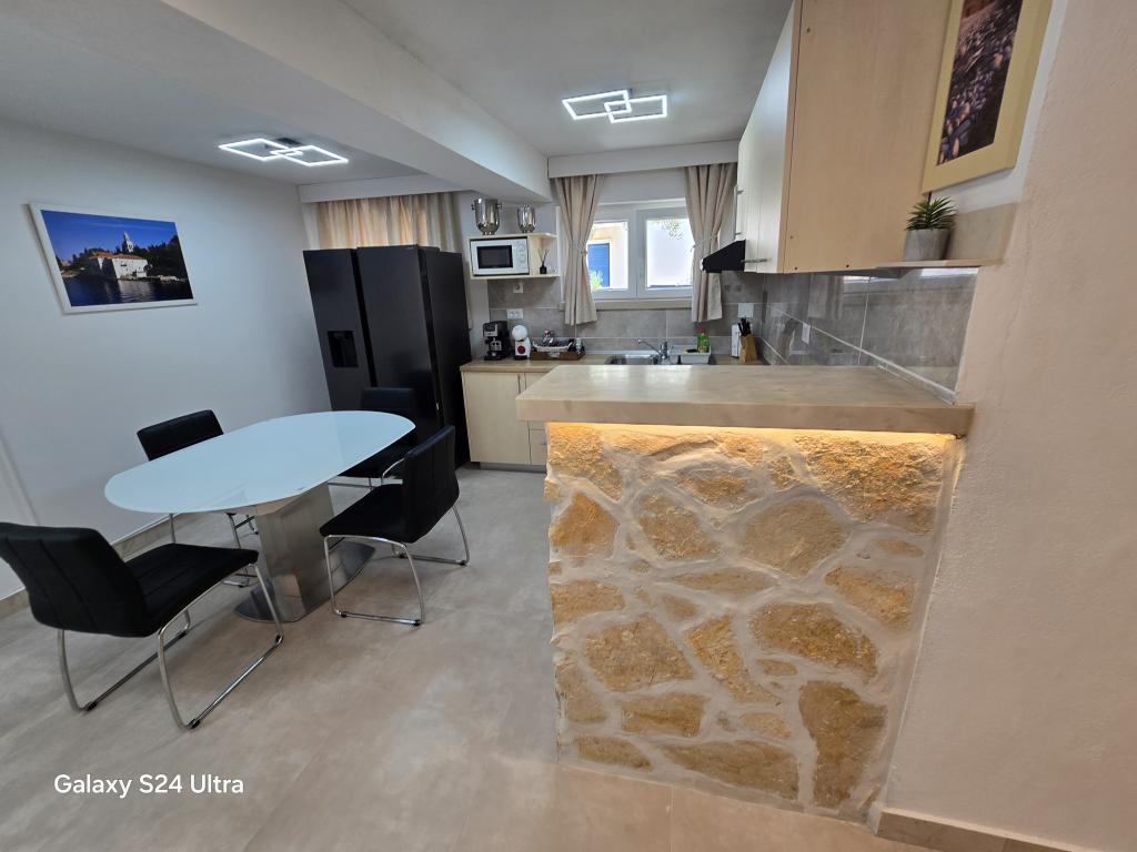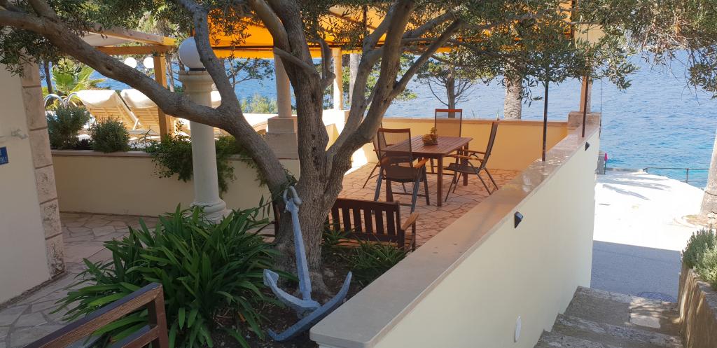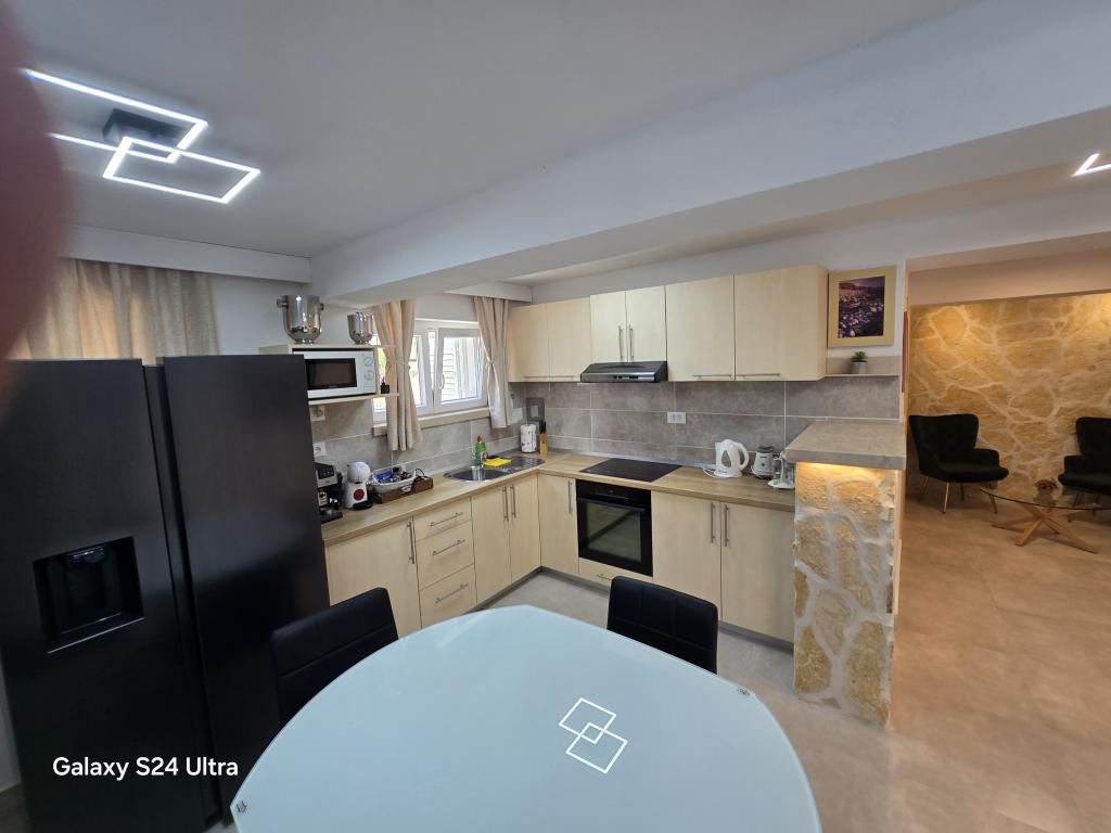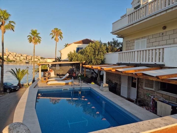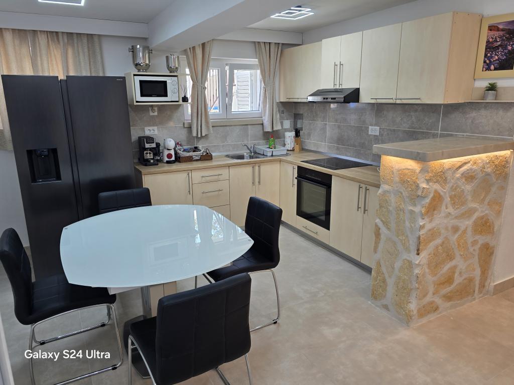 Apartment ID 759 has 86 m2. Luxuriously furnished and located in a beautiful part of the town of Korcula by the sea. The apartment has its own swimming pool and two large terraces and a sunbathing terrace. The apartment has absolutely everything you need for a vacation. Two air conditioning units, a large bathroom, two TVs, a nice comfortable space, two rooms and you have your own parking space for your vehicle. You are literally 5 minutes walk from the city center and 2 minutes from the beach. Barbecue on the terrace for your gastronomic pleasure. The apartment has a washing machine and dryer, dishwasher, two coffee machines, toasters, juice makers, etc. Fully and modernly equipped apartments in a quiet area of the town of Korcula, located first row to the sea; The facility is located 5 minutes walk from the city center and the beach and parking are right in front. Apartments and rooms ID 760 and ID 761 and rooms ID 5589 and ID 5599 are luxurious. The terrace at the back is also covered with a pergola and canvas. You have your own parking lot. Parking for vehicles is only for apartments.