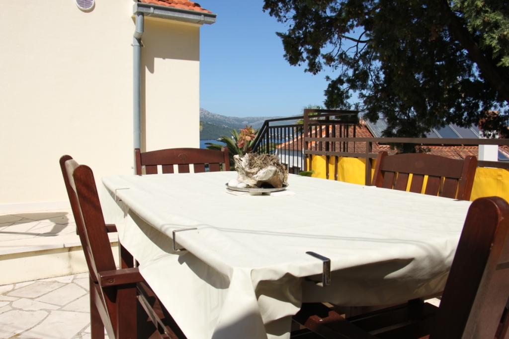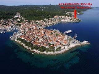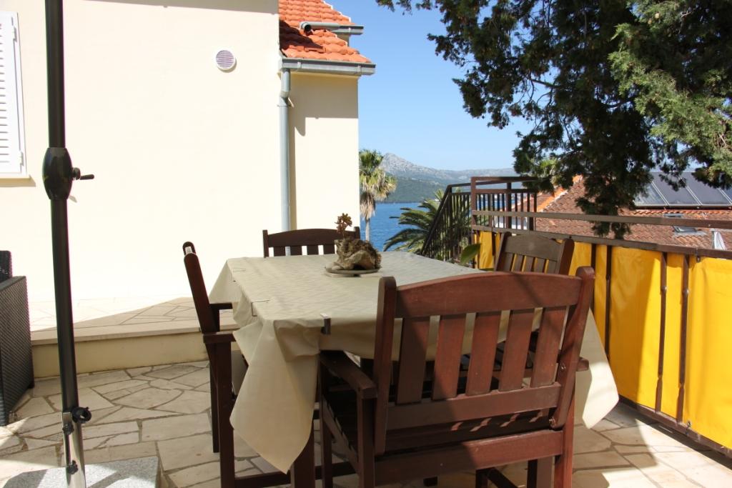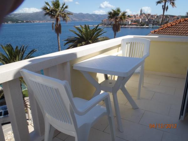 We had a wonderful stay at apartments Medmar on Korcula. We traveled with another couple and had the two upstairs apartments with a balcony facing the sea and old town. The location is perfect. Less than a 5 minute walk from old town so it's easy to walk back and forth. There is a rocky swim area with steps down to the sea literally across the small street about 25 feet from the apartment. I would find it hard to find a better location. Along with the sea view balcony, there is a very spacious back patio surrounded by fruit trees where we enjoyed picnic lunches. The apartments were very clean and had all the amenities we needed. Nice small kitchen with every utensil and appliance you'd need. I would highly recommend these apartments to anyone. As an added bonus, Mrs. Marovic is a wonderful hostess. She invited us in to her apartment below to visit and have a toast of her homemade orange liquer. It certainly added to our fantastic experience on Korcula island. We hope to be back someday soon.