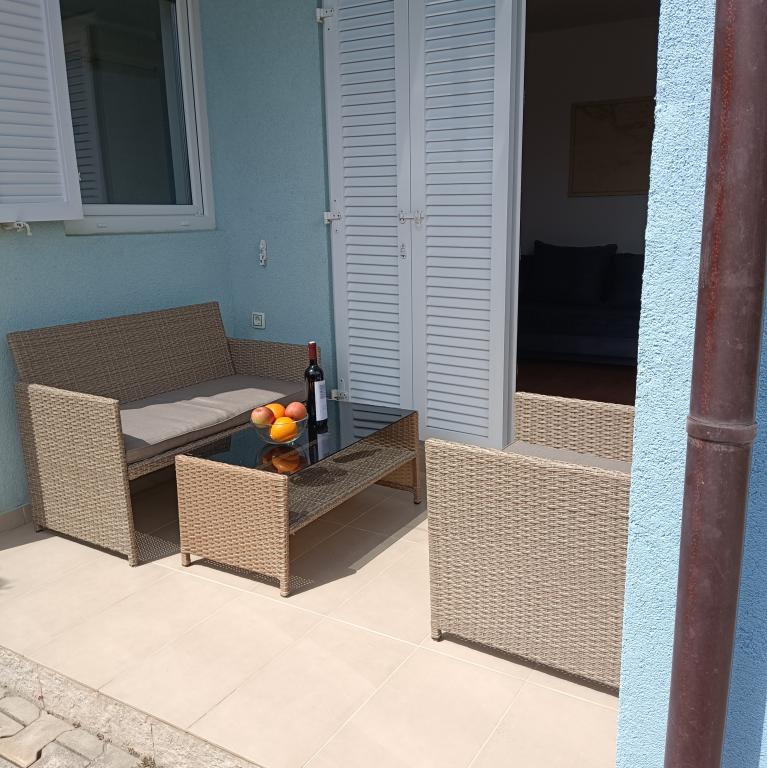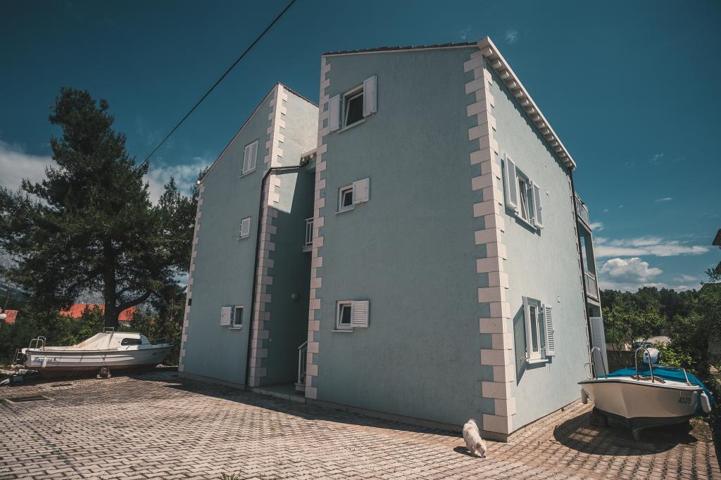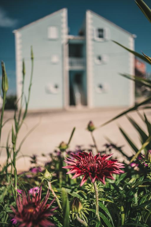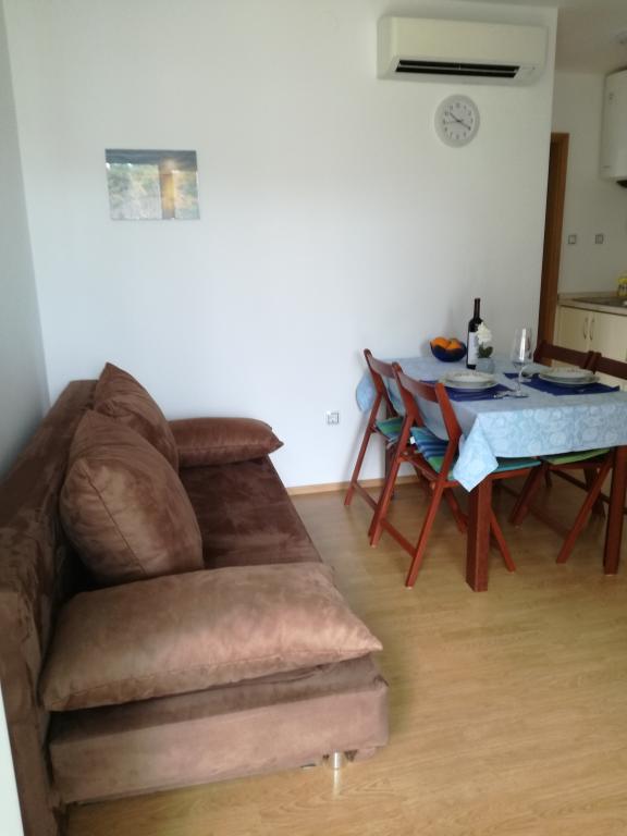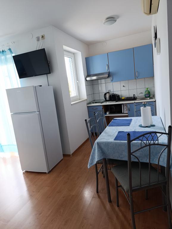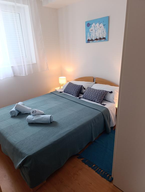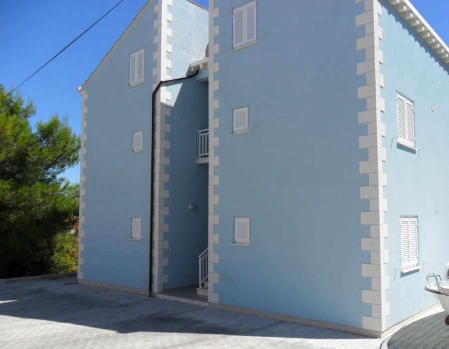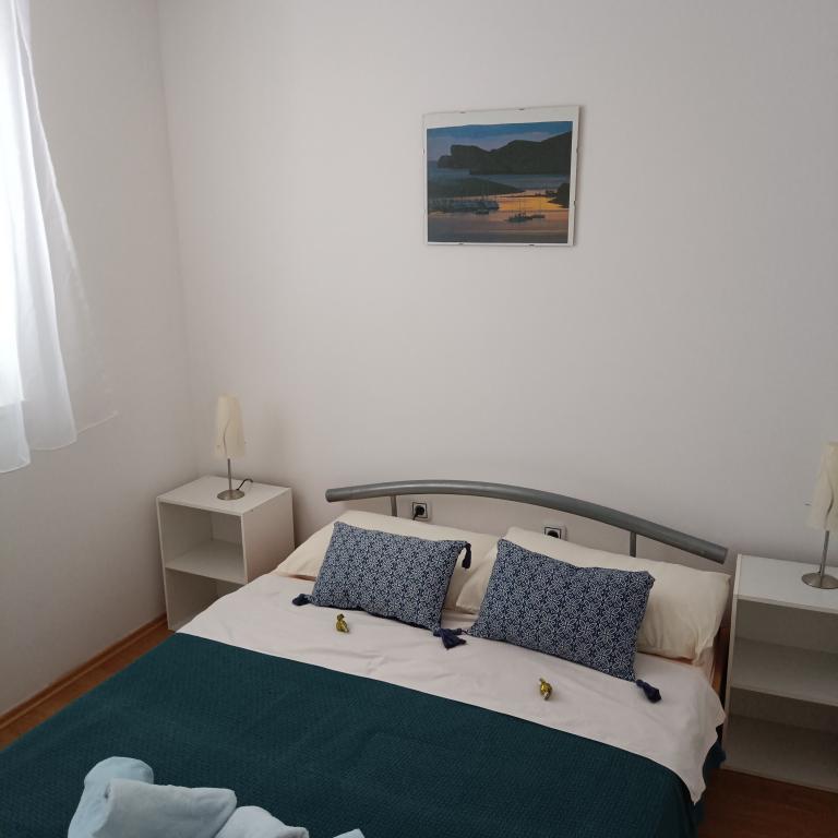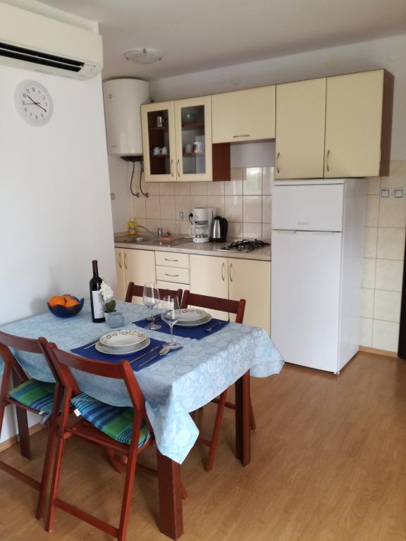 Apartments ***, TV/SAT, air conditioning, balcony, separate bedroom, parking space, 10 min to the sea and beach, shops and cafes, 25 min easy walk to the old town. The house is located in a quiet part of town near the Gojko Arneri swimming pool, which has an indoor pool and gym and can be used all year round. Apartments with a separate bedroom with a double bed, kitchen in the living room with all necessary amenities, bathroom with shower, fully equipped, balcony with table and four chairs, parking space in front of the house. The price includes: final cleaning, parking, Wi-Fi, air conditioning, hair dryer, shared barbecue, parasol, tourist tax
