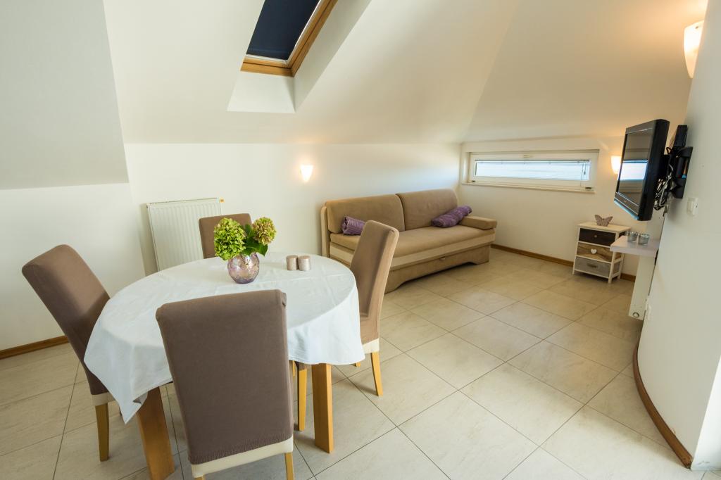We are with the apartment and the beach very satisfied, because it is suitable for families who need a quiet and peaceful vacation. The store is nearby, close to the beach but it is suitable for children. House, apartment is arranged as shown in the illustrations, the owners are very friendly. There is also a restaurant. We recommend.
