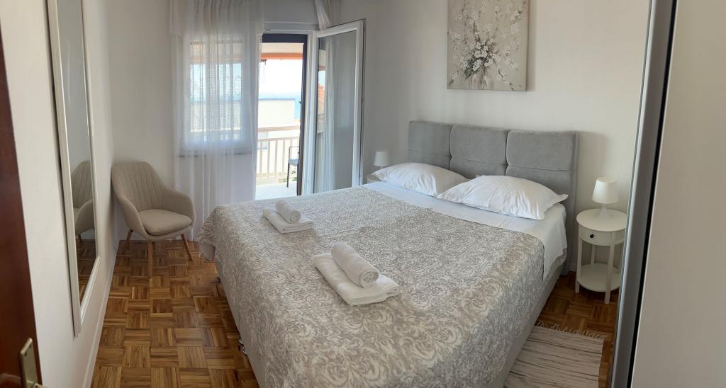 Villa Ibis is located in the quiet town of Kozino, only 10 km from the center of Zadar and 90 m from the sea and the beach. There are 4 apartments in the villa. 2 one-room fully equipped apartments consist of: kitchen/living room, bedroom, toilet and balcony with a beautiful view of the sea. Two two-room apartments each with two bedrooms, kitchen, living room, toilet and balcony with sea view. The apartment is intended for 4 1 persons