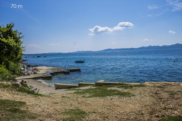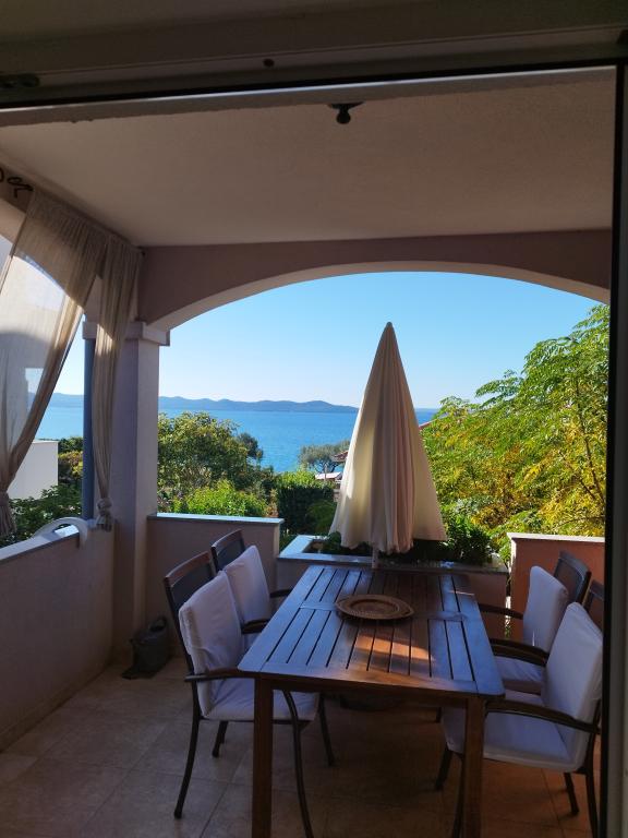 We were ten days in the apartment and we are really excited by it. They had from there a beautiful beach view and the location is really good! The beach is very nearby, so you can even take a dip in the morning briefly and then have breakfast on the terrace. The city of Zadar is also very easy to reach from there. The apartment is child friendly and we felt very comfortable in the clean rooms immediately. The landlady is hospitable and very helpful, which helped make us feel comfortable us. The barbecue in the garden was also to grill cozy with friends the perfect place.