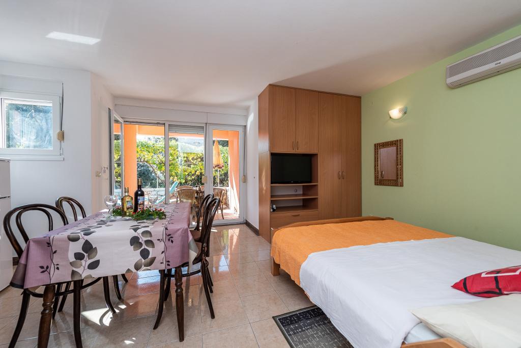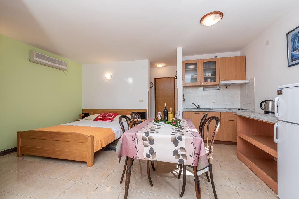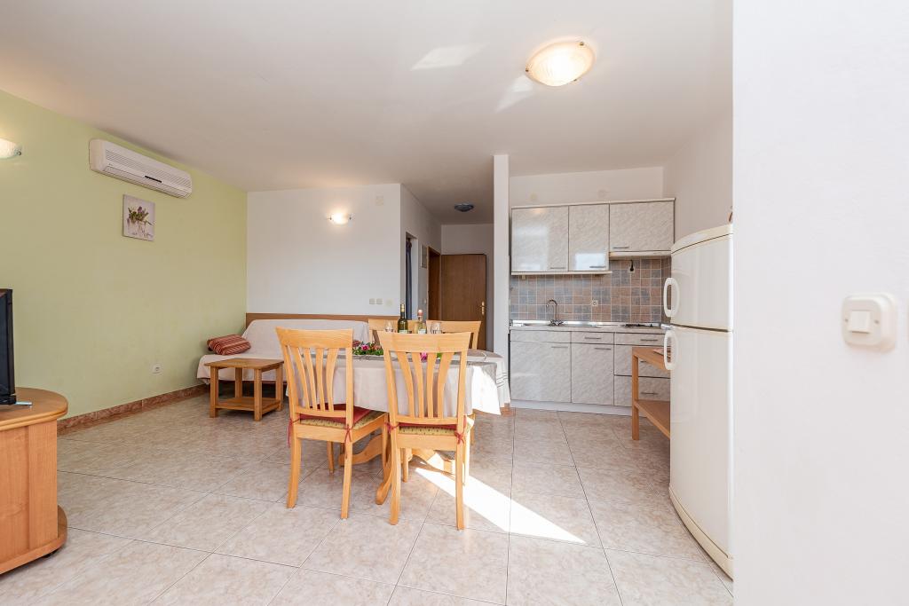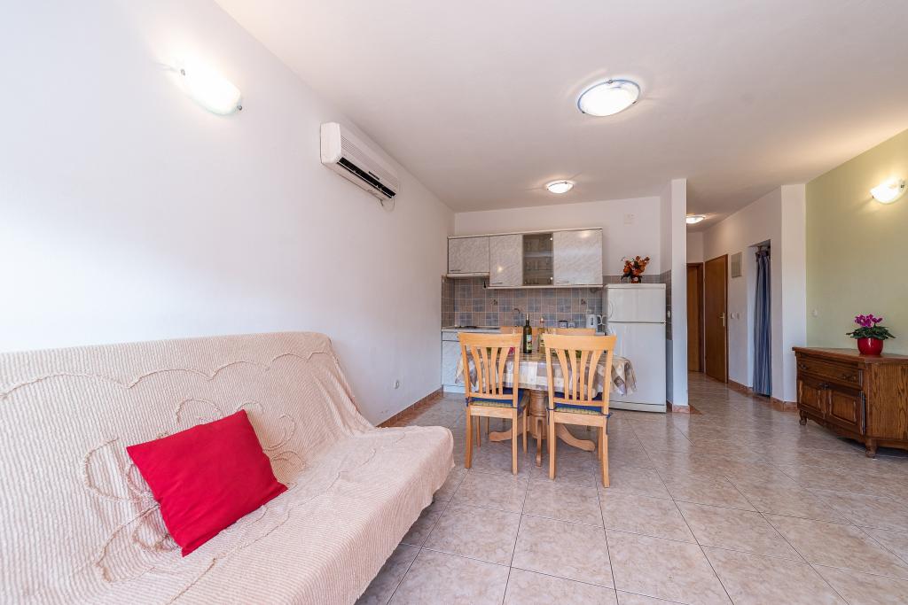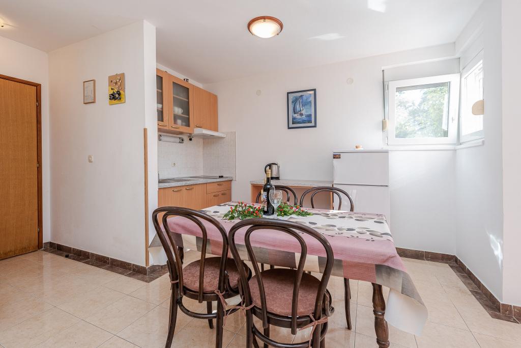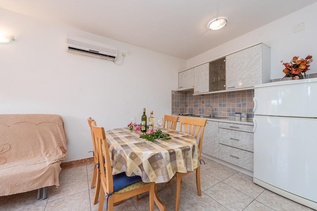 Fully and modernly equipped apartments in a quiet area of Kožino, located 50m from the beach, 5 minutes' walk to the shops. The facility also includes a covered area for socializing with an attached fireplace as well as two outdoor showers! Parking provided next to the facility for each vehicle.