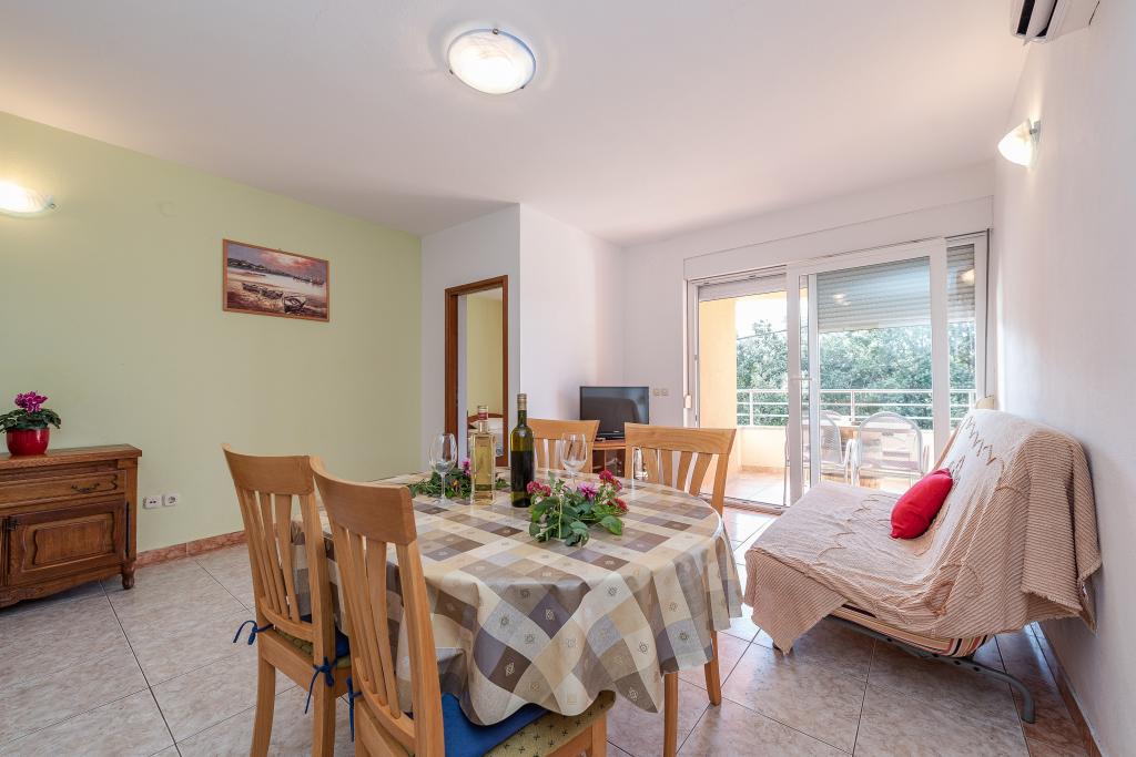 The stay was full of sounds of nature and peace due to the abundance of greenery around the apartment. We felt very at home. Nicely decorated, fully equipped and clean apartment, and outside there is a yard with a barbecue and a shower. The bed was a little less comfortable. We spent pleasant moments in the company of the owners, who made us feel warmly welcomed. Well-maintained beaches, clean water, natural shade. There are several shops and quality restaurants nearby. There are many options for walking. The best is the mostly shady macadam footpath to Petrčane. It is also possible to visit an open-air cinema in the town.