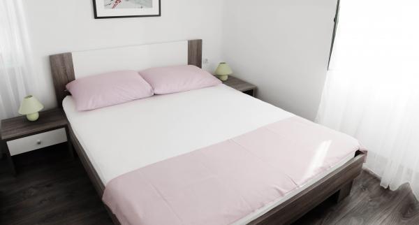 The apartment is located in a quiet, old part of town Location on the floor of the 100-year old stone house. 60 m2, newly renovated two-bedroom apartment consists of a large living room that includes a kitchen and dining room, two bedrooms, bathroom (with toilet and shower) and a terrace. Terrace is 25 m2 in size, with a beautiful view of the Pasman Channel, Biograd, the Benedictine monastery of St. Cosmas and Damian and the Franciscan monastery of St. Duje. The beach is a 5 min walk.
