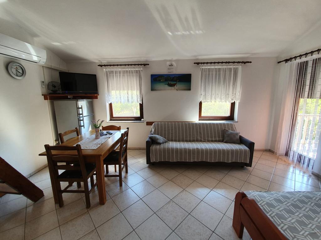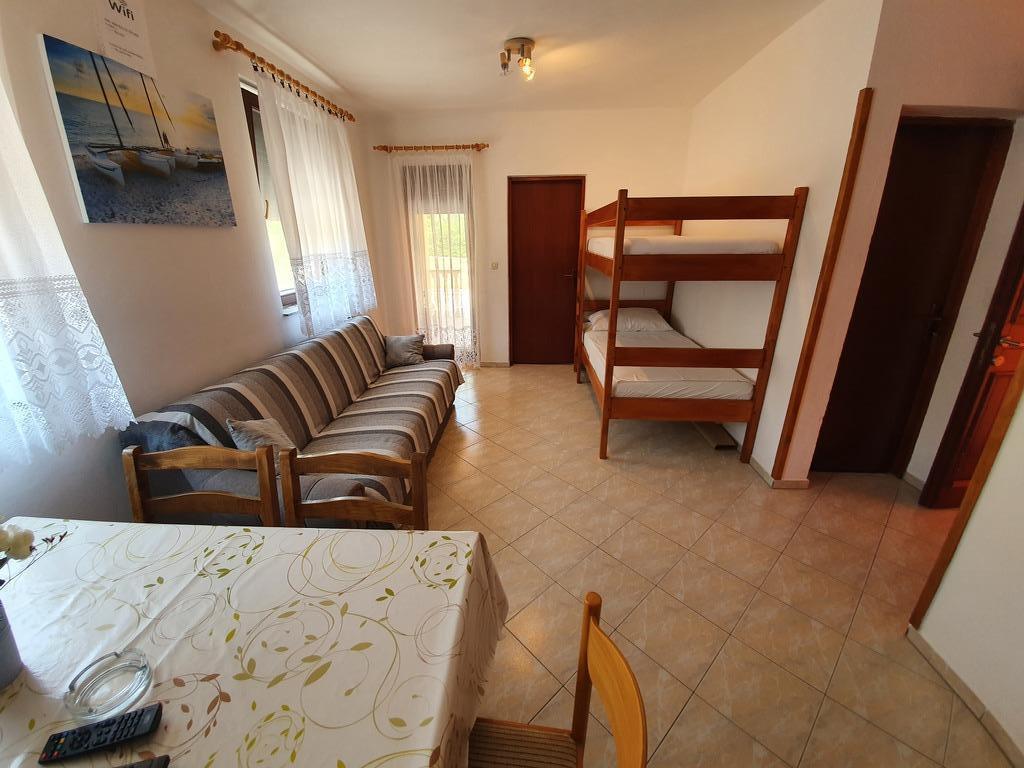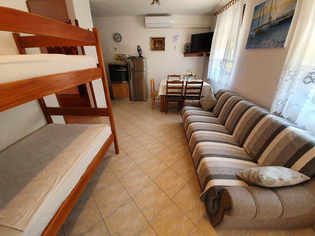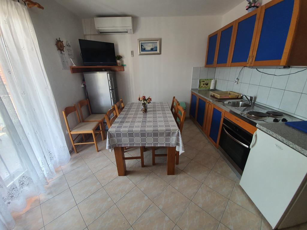 Apartments Jažo invite you to spend your vacation on the island of Pašman, in the town of Kraj. We offer accommodation in five apartments. Each apartment has a bedroom, bathroom, fully equipped kitchen, living room, TV, air conditioning, bed linen, towels, extra beds and a terrace. A parking space is provided, in the yard there is a grill and a gazebo for socializing. The apartments are located an 8-minute walk from the nearest Tratica beach, which is ideal for families with small children.