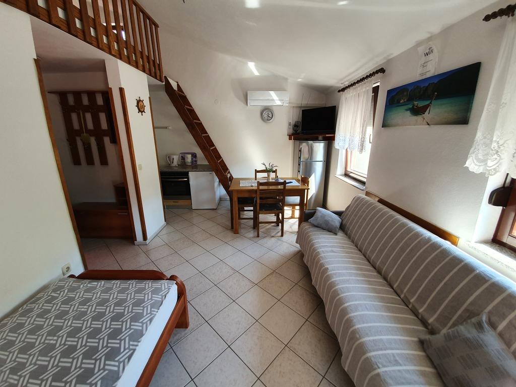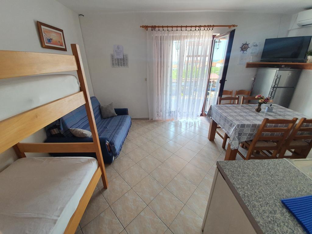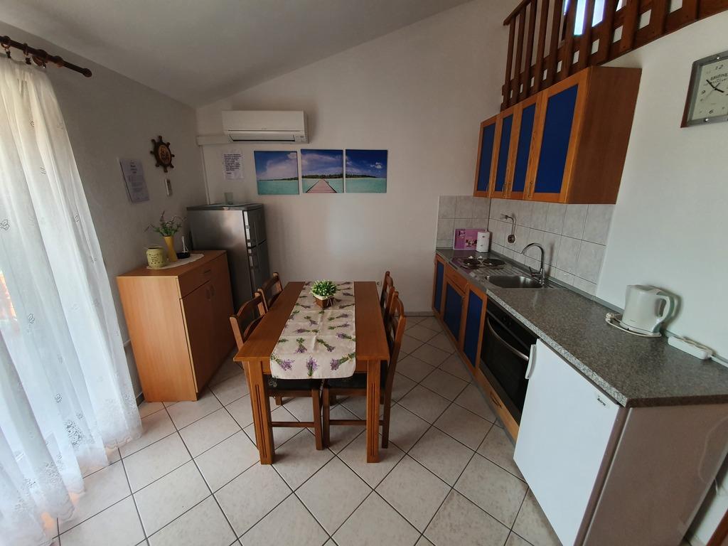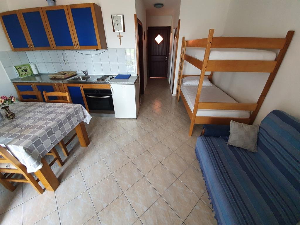 Apartments Jažo invite you to spend your vacation on the island of Pašman, in the town of Kraj. We offer accommodation in five apartments. Each apartment has a bedroom, bathroom, fully equipped kitchen, living room, TV, air conditioning, bed linen, towels, extra beds and a terrace. A parking space is provided, in the yard there is a grill and a gazebo for socializing. The apartments are located an 8-minute walk from the nearest Tratica beach, which is ideal for families with small children.