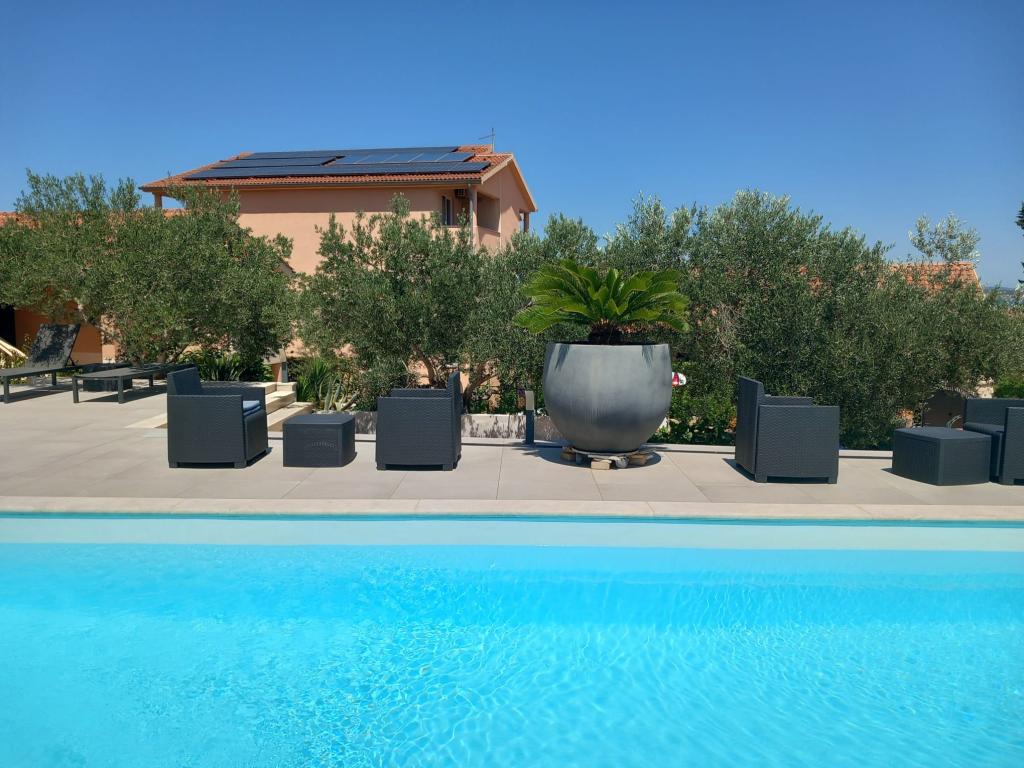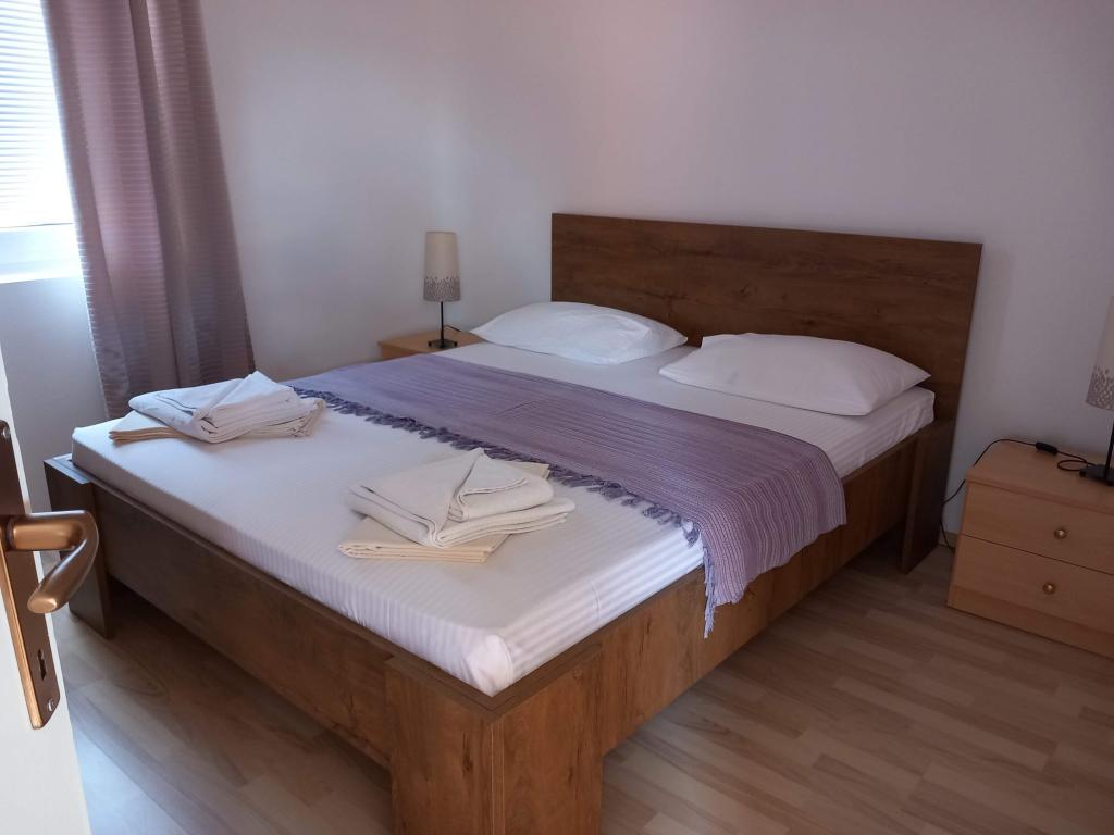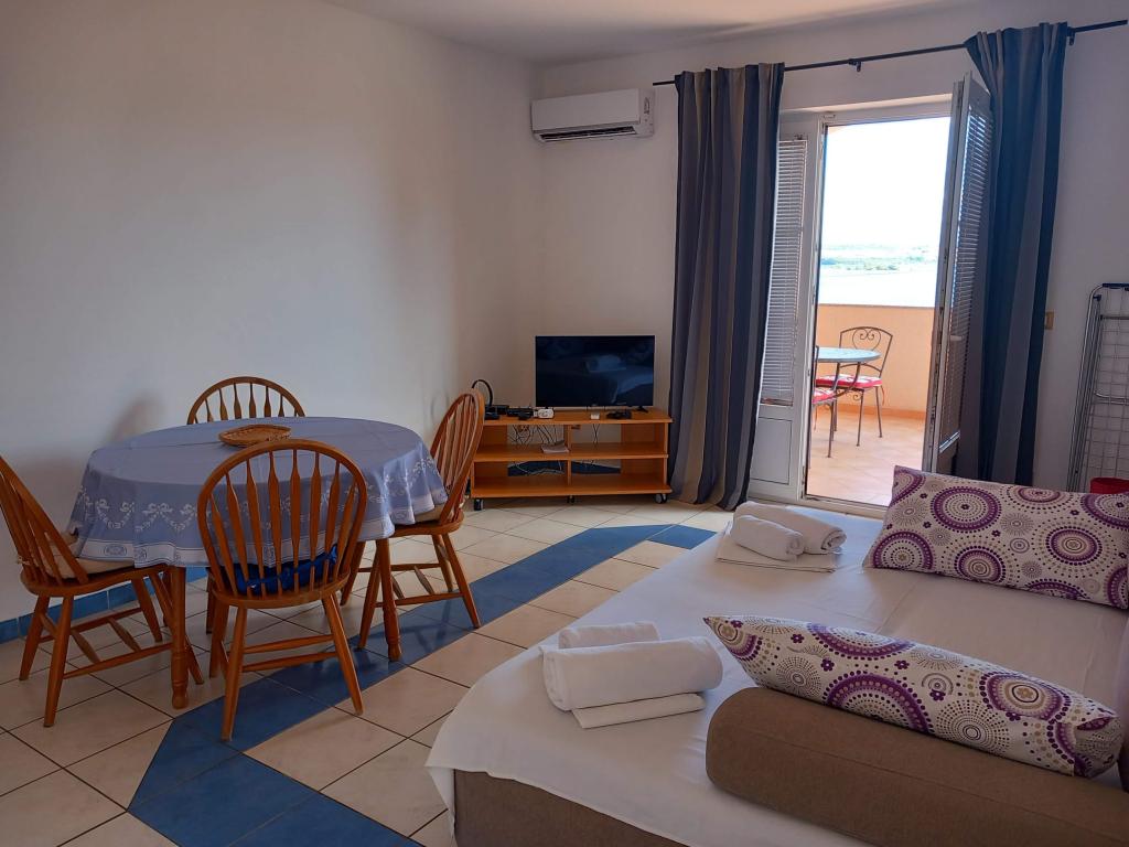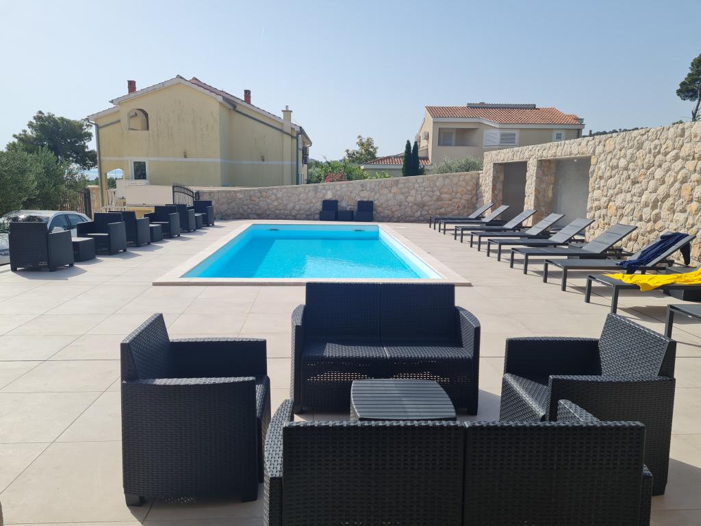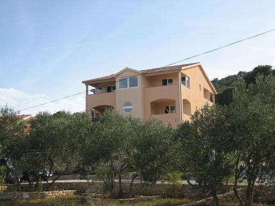 Apartment "Olive" is situated on the island of Pasman, in End. Pasman Island is located near the National Park Kornati and Krka National Park, which is just opposite to visit if you opt for our accommodation on the island of Pasman. In the Mediterranean environment, not far from the sea, the house offers accommodation in 6 apartments with a beautiful seaview. All apartments have air conditioning, terrace, TV / SAT, LED TV, linens, towels, kitchen utensils and cooking and parking place in the yard of the house and is available to all our guests, there is a large barbecue and seating area for 12 people. The beach is sandy with a paved part and is particularly suitable for small children, and partly beach is covered with small amount so that you have nowhere to hide from the sun. Apartment house "Olive" is located 150m from the sea, and the main ferry port where the post office, pharmacy, ATM, market, shops, restaurants and taverns is 2 km away.