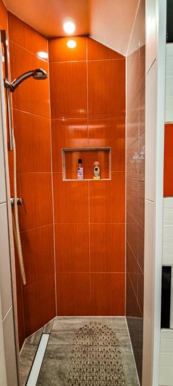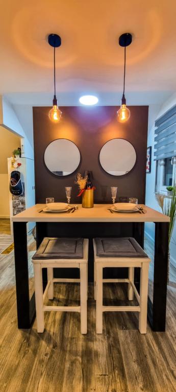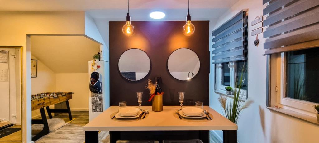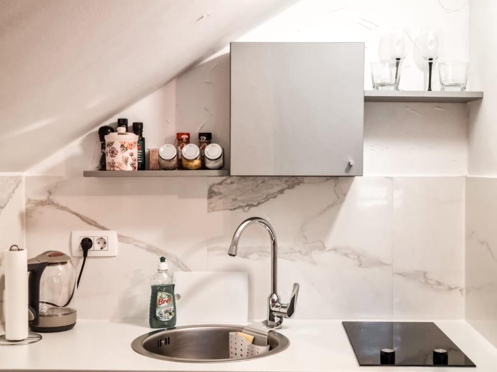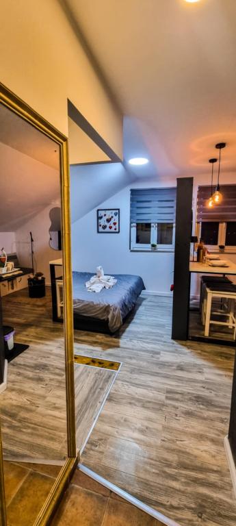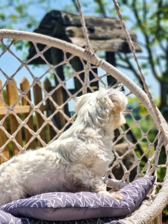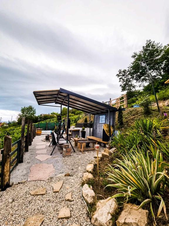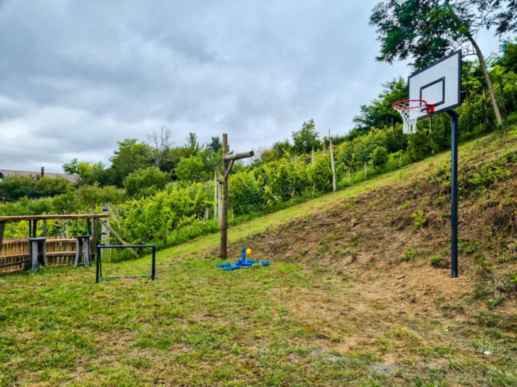 Studio apartment 7. nebo with a capacity of 2+0, is located in Trški Vrh, near the town of Krapina. 7. nebo is a perfect combination of rustic and modern and a great option for a break from the city noise and urban life with nature and the Zagorje homeland. The studio consists of a kitchen and dining room, a bed for sleeping, a living room and a bathroom. The accommodation also includes parking, wi-fi, air conditioning, TV, radio, kettle, microwave, induction hob, refrigerator and various board games for fun (five-a-side football, electric darts, table football, hanging bowling, etc.). The facility is surrounded by orchards and flower gardens and a smaller part of the forest. Guests also have the opportunity to use the barbecue, campfire, deck chairs, swings, gazebo and terrace, as well as a small outdoor pool and shower on warm summer days. There is no surcharge for pets and they are welcome! Welcome!