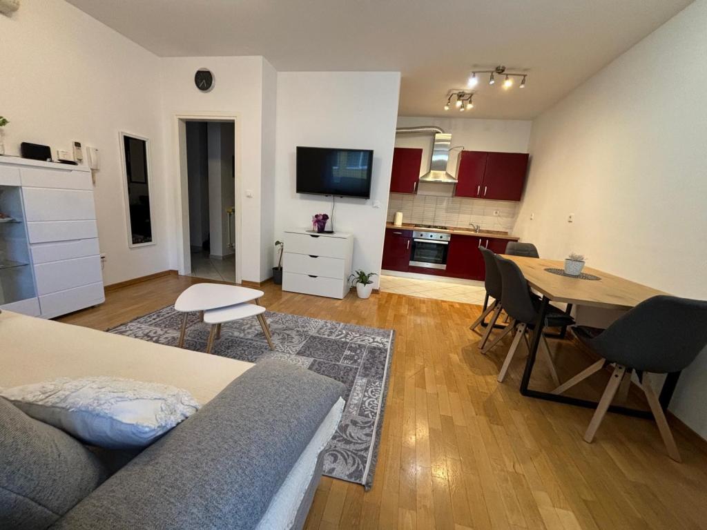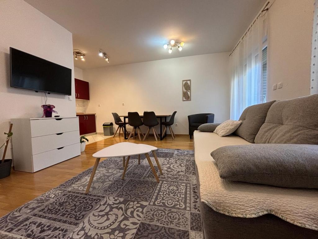 Apartment Dora is located in the very center of Krapinske Toplice, close to all important facilities. 100 meters from Aquae Vivae Thermal Bath, pharmacy, clinic. 50 meters from a shop and an ATM, and 200 meters from the Rehabilitation Hospital, Magdalena cardio-surgery, Acromion-orthopedia. The apartment is 50 m2 in size and is located on the 2nd floor of a modern residential building with the use of an elevator. Free parking and WI-FI internet are available to apartment users.