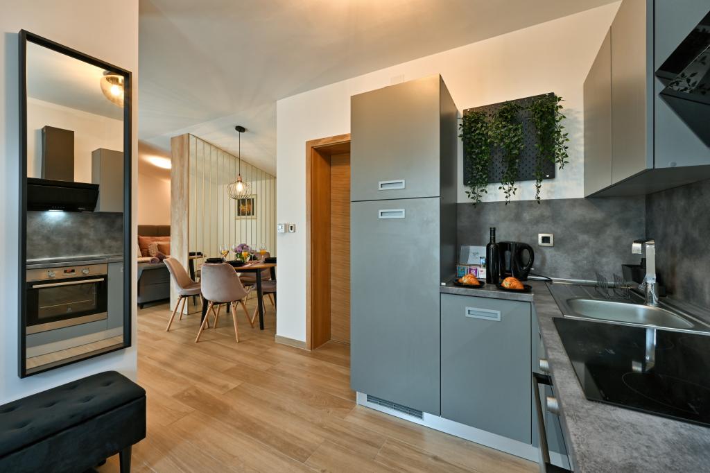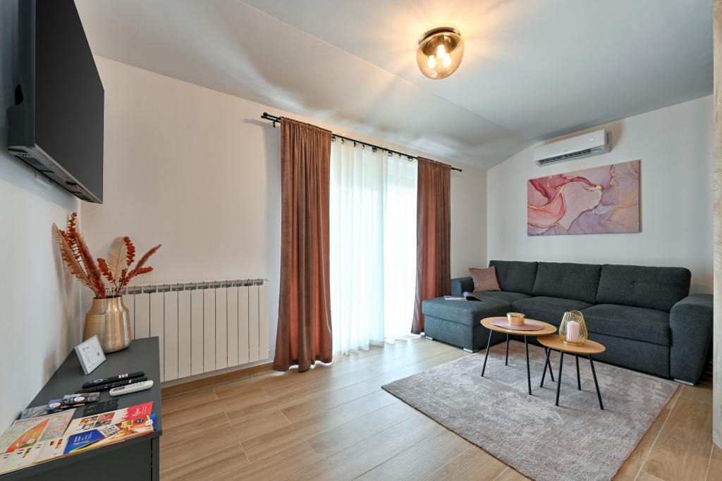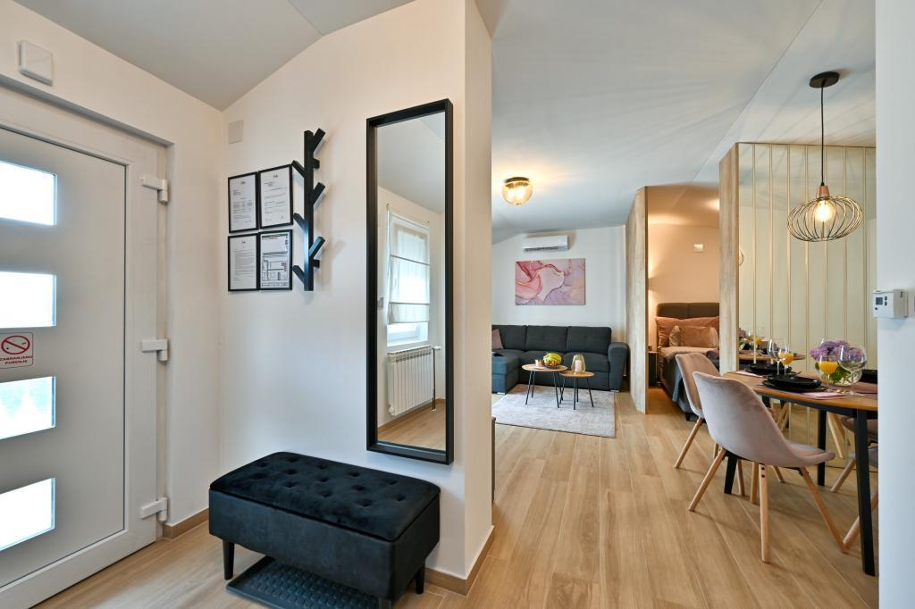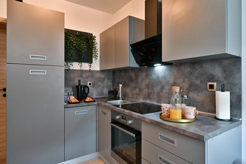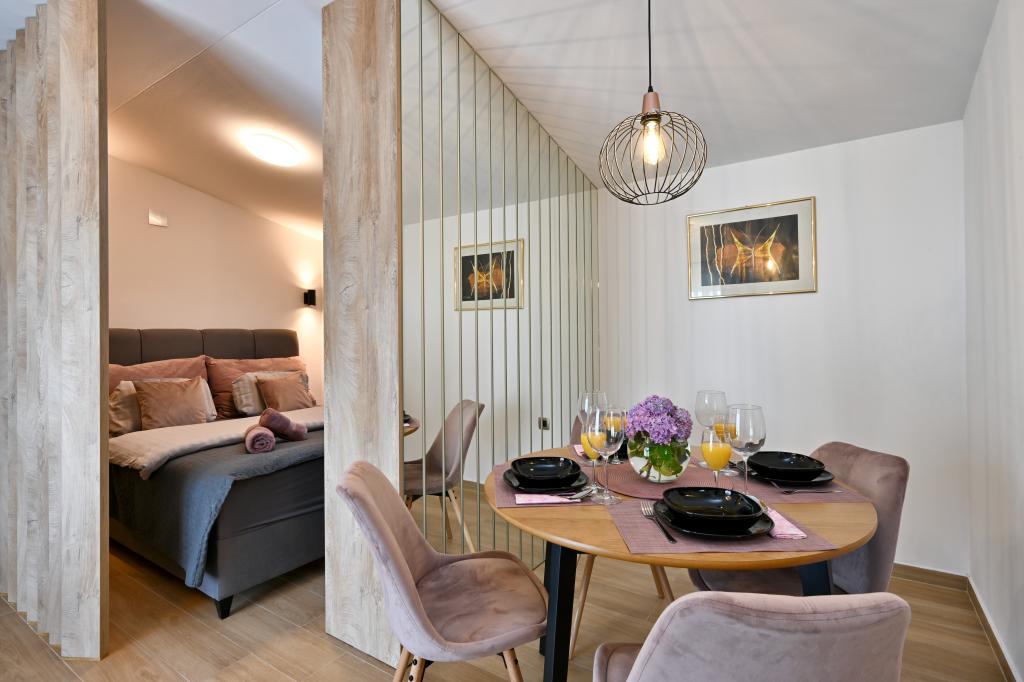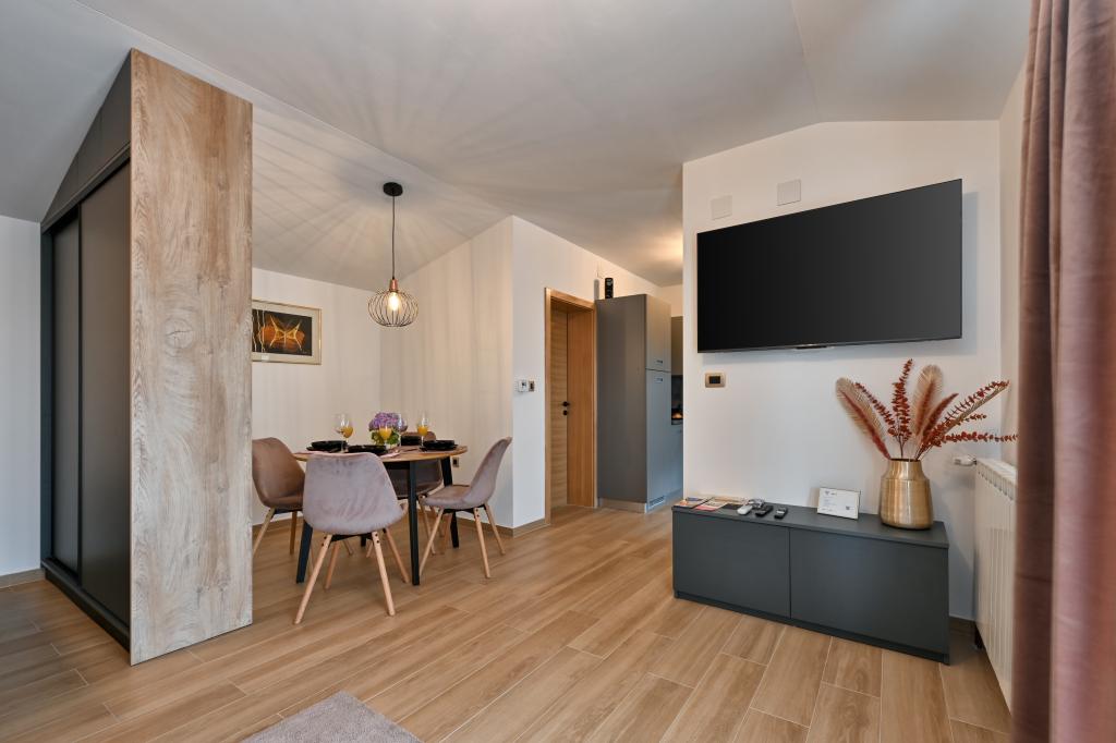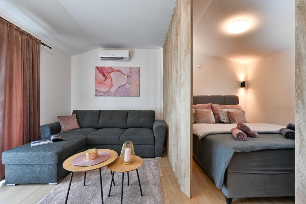 Tonka studio apartment is located in a quiet part of Križevci, surrounded by greenery with a spacious yard. The facility is located a 7-minute walk from the city center or a 1-minute drive by car. The apartment is air-conditioned, has free WiFi, as well as Netflix, is equipped with towels and disposable slippers. It consists of a kitchen, dining room, living room, bedroom, bathroom and has a terrace, as well as a yard with parking. There is a charging station for electric vehicles within the facility.