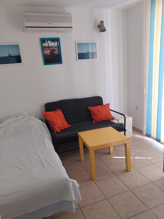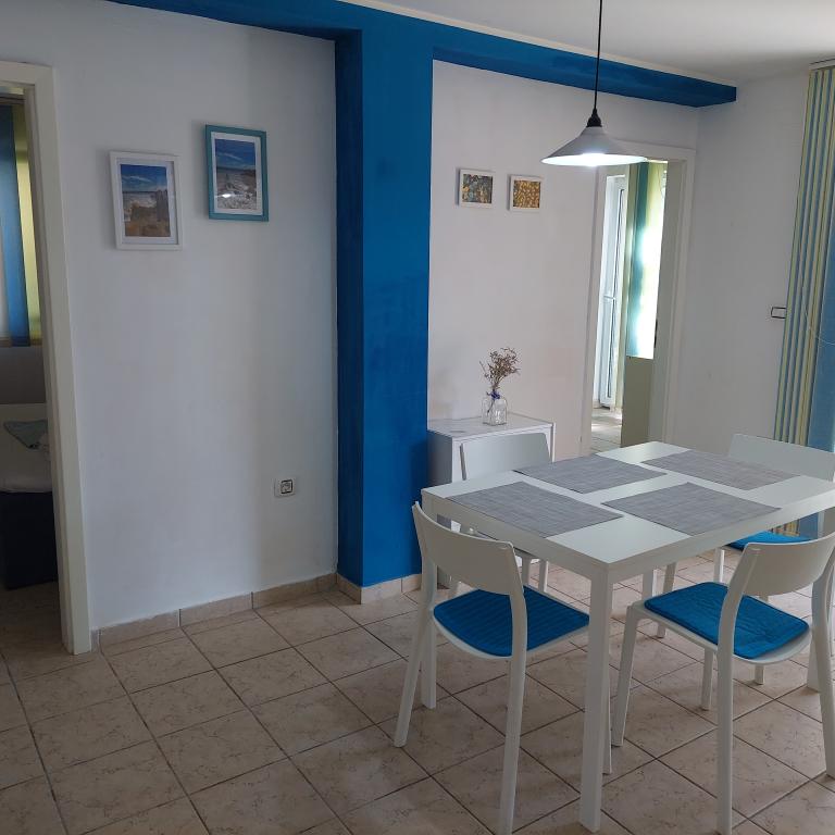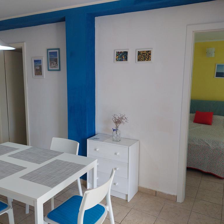 A pleasant, cute apartment that has everything you need for well-being. A friendly landlady who takes care of everything you need, Friendly neighbors, A beautiful terrace that provides privacy and enjoyment, The beach is very close for all tastes and needs. All in all, a nice vacation and we're coming back next year, date agreed