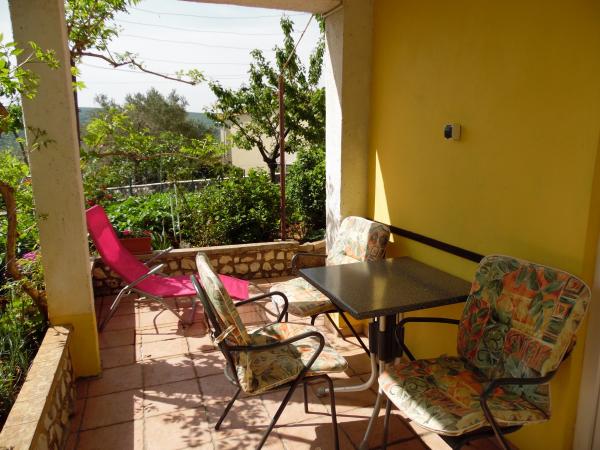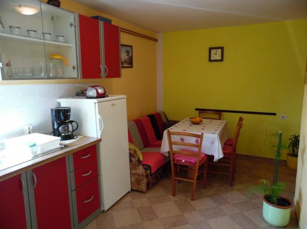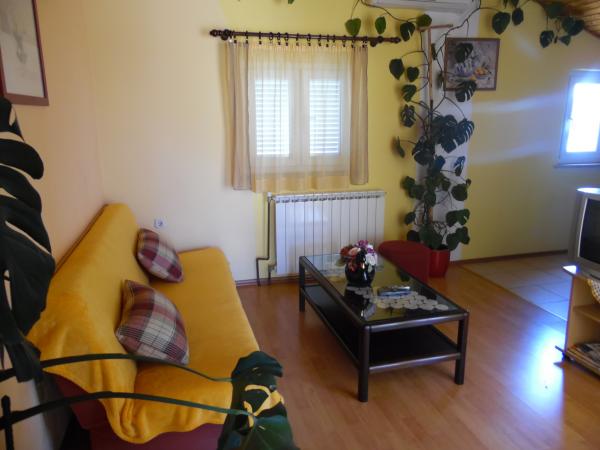 The house is near therapeutic mud and cave ˝Biserujka˝. House is 350 meters distant from beach. Secured parking and barbecue. Apartment 1 is in ground floor surrounded with garden. It has 1 bedroom and 1 bathroom. Accomodation for 3-4 persons. Apartment 2 is on 1st floor and has 2 bedrooms and 2 bathrooms, kitchen and living room. Apartment has 75 m2 and 30 m2 terase. Accomodation for 6 persons.
