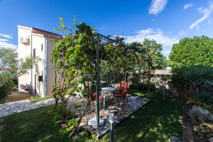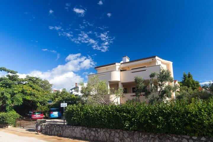 Read more Accommodation unitsAvailable to guests: Parking is in the yard in front of the apartment where there is a large barbecue that can be used. Other notes: The entire town of Krk, not only the old part of the town, but also the tourist area with beaches, is a hilly area, so we always tell our guests to expect a 5-minute walk to the beach from the apartment, but that getting to the apartment would take 8 minutes :-). Eco Island Krk In June 2015, an ecological system for municipal waste disposal was introduced on the island of Krk, now known as Eco Island Krk. Eco Island Krk represents a comprehensive waste management model, which is the first of its kind in Croatia that treats all types of waste and which we are very proud of. Therefore, we ask you to adhere to the rules listed below. The guest collects and takes away the waste of each apartment in five separate containers behind the house: organic waste - brown; paper - blue; HOUSEHOLD waste - yellow; glass - gray; other unsorted waste - green.