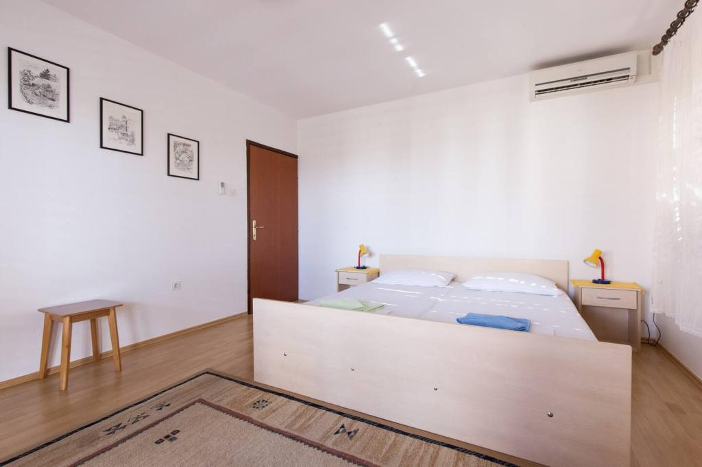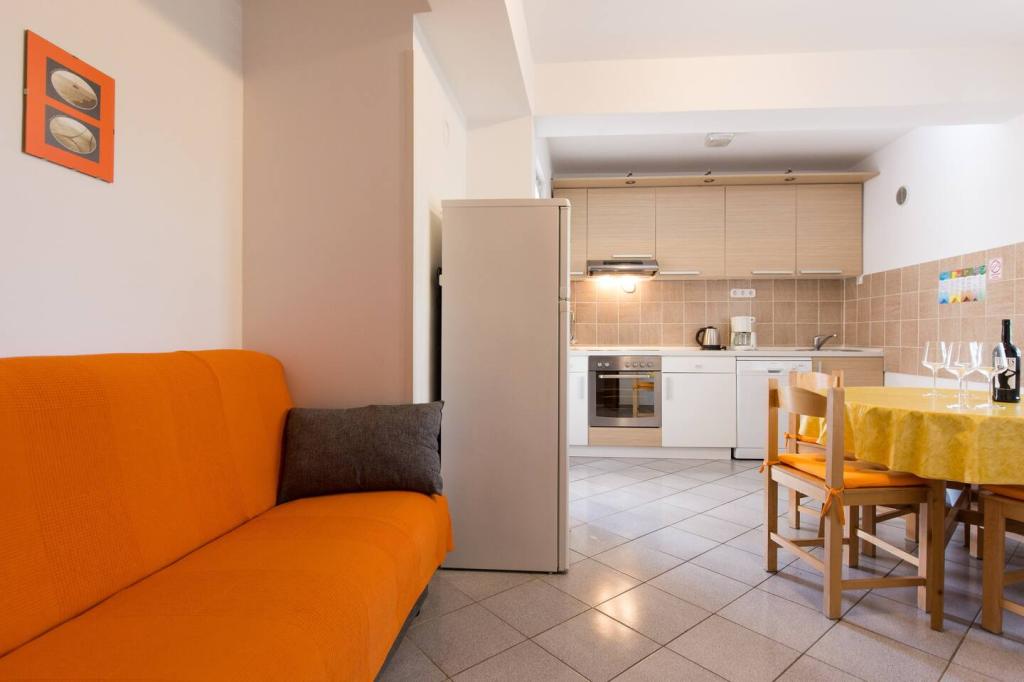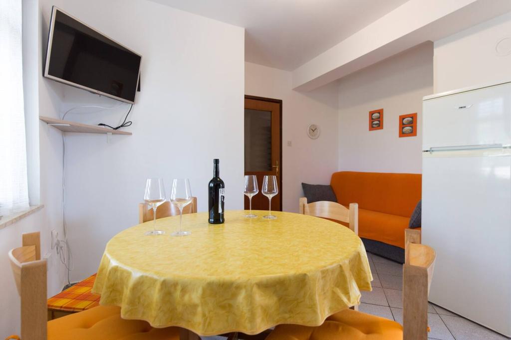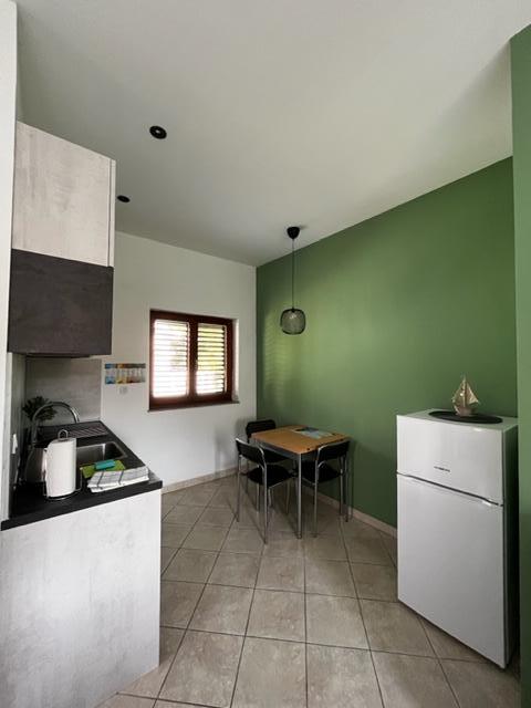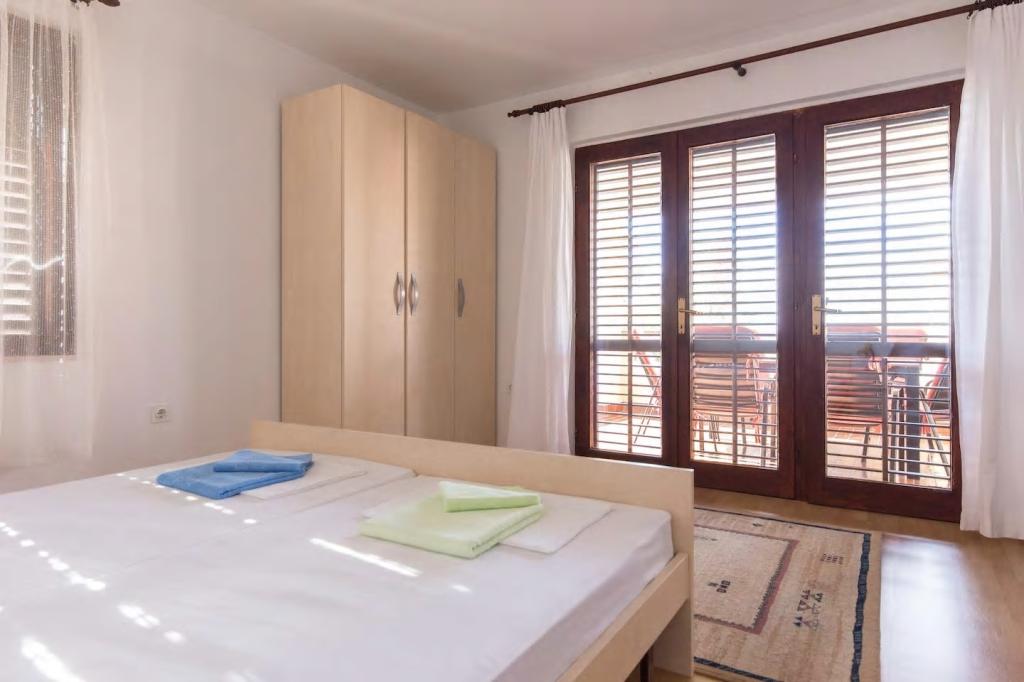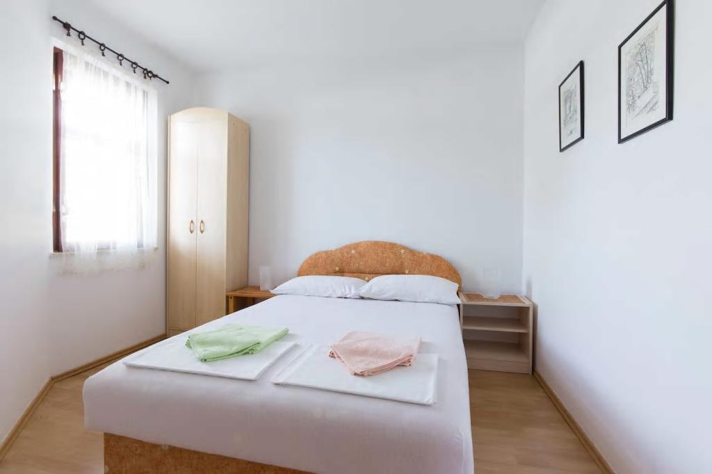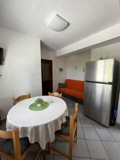 Our apartments are located in the town of Krk and are 200 m from the beach (5 minutes walk), and 900 m from the cultural and historical center of the town (15 minutes walk). Nearby there are pebble, rocky and sandy beaches and sports facilities. Apartment 3, 22m2 (studio) is for 2 people. The apartment is located on the first floor with a separate entrance and opens into the garden where there is a set of seats available only to guests of Apartment 3. The apartment has a studio layout with a French bed 160x200 (for 2 people). It has a bathroom with a shower and a fully equipped kitchen with a dining table, refrigerator with deep freezer, stove (electricity), microwave oven, filter coffee maker, kettle, cutlery. The apartment also has: cable TV, free WiFi flat Internet, and air conditioning with manual control, safe for valuables/personal documents.