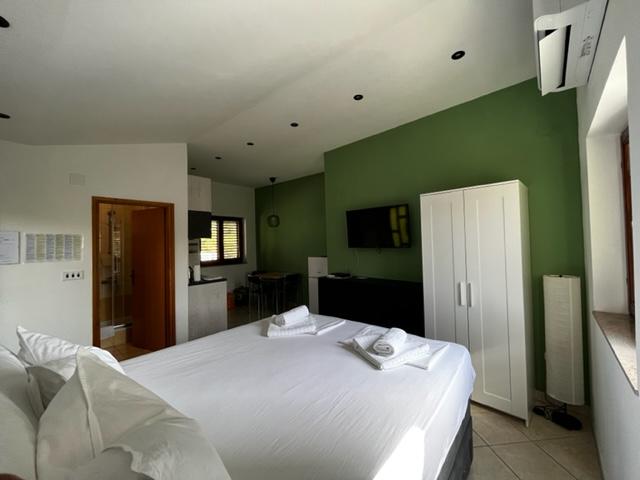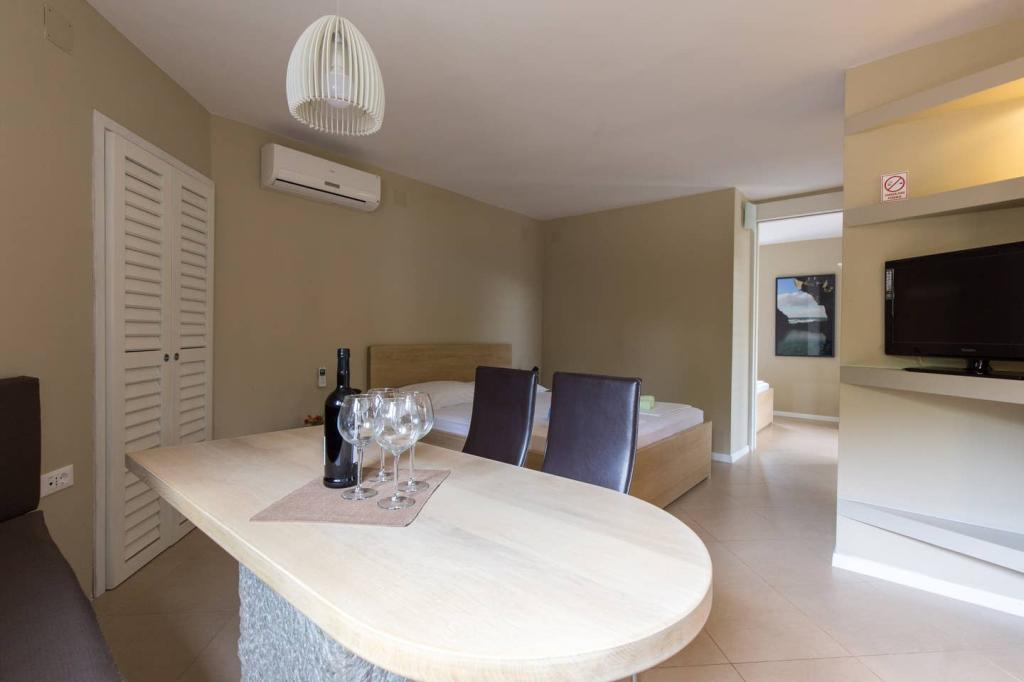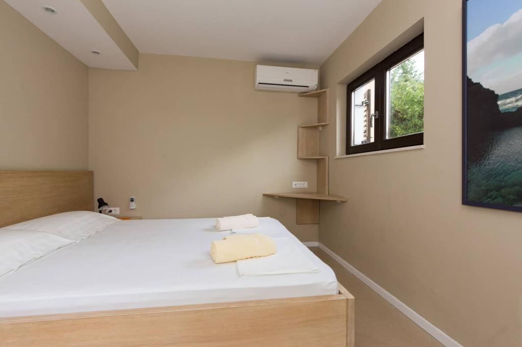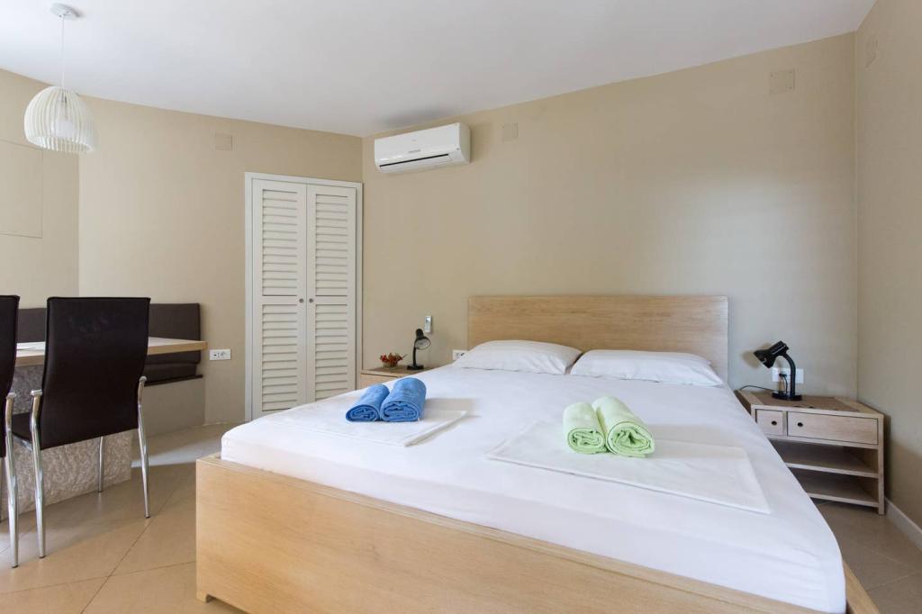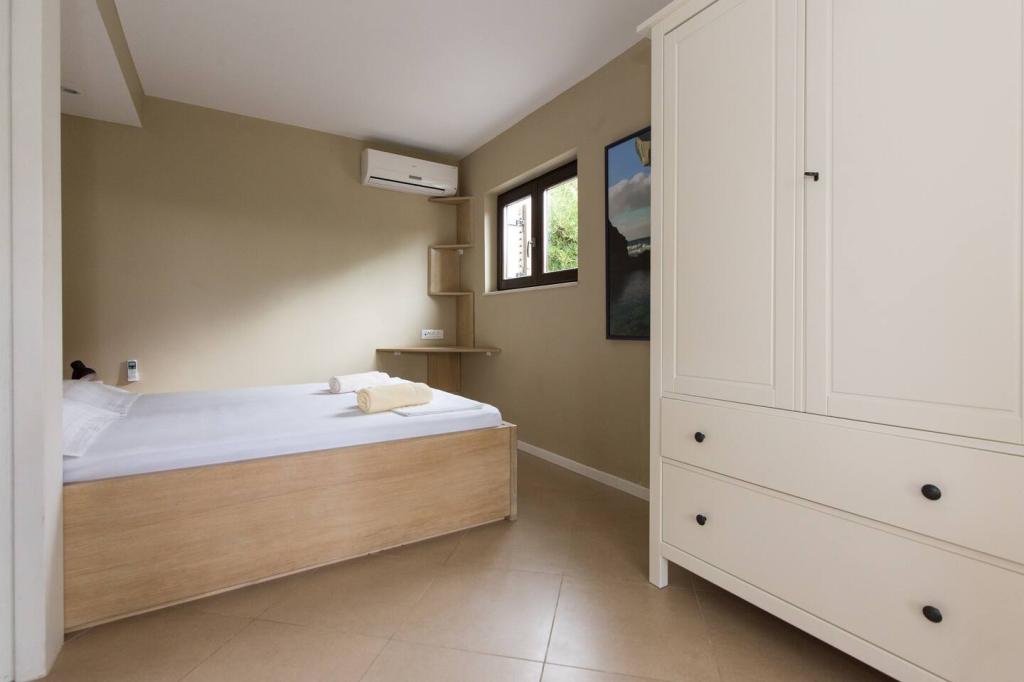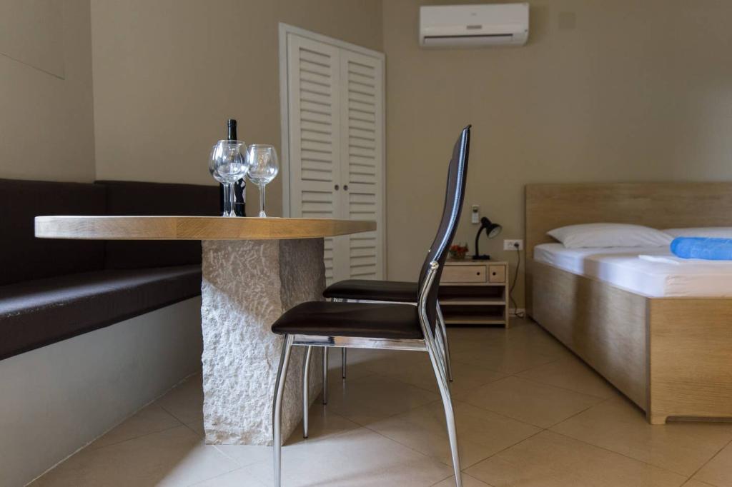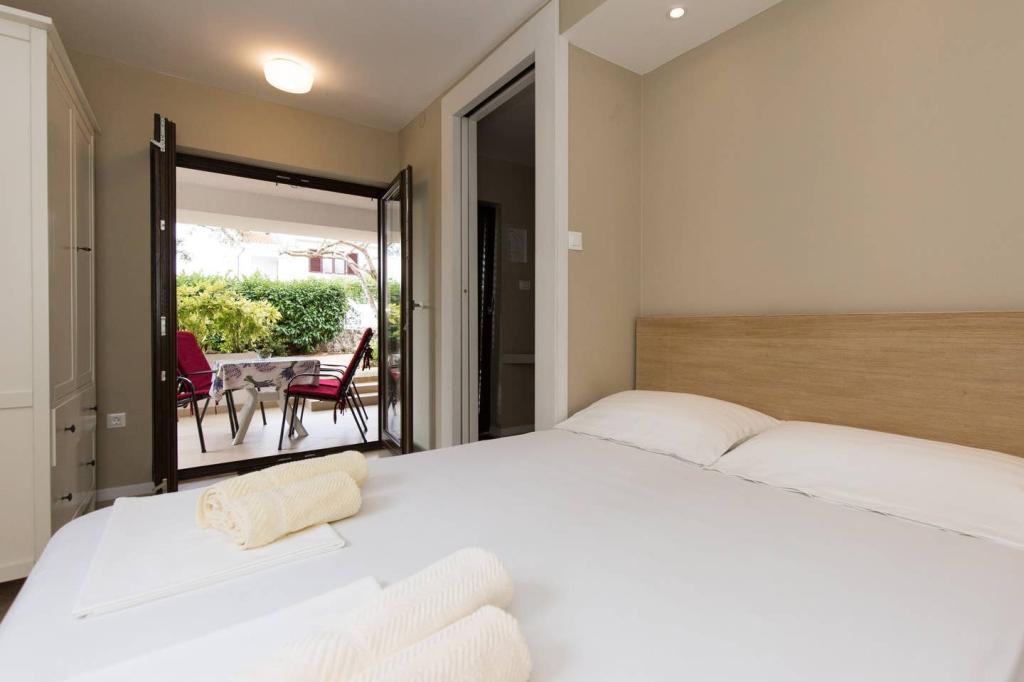 Our apartments are located in the town of Krk and are 200 m from the beach (5 minutes walk), and 900 m from the cultural and historical center of the town (15 minutes walk). Nearby there are pebble, rocky and sandy beaches and sports facilities. Apartment 3, 22m2 (studio) is for 2 people. The apartment is located on the first floor with a separate entrance and opens into the garden where there is a set of seats available only to guests of Apartment 3. The apartment has a studio layout with a French bed 160x200 (for 2 people). It has a bathroom with a shower and a fully equipped kitchen with a dining table, refrigerator with deep freezer, stove (electricity), microwave oven, filter coffee maker, kettle, cutlery. The apartment also has: cable TV, free WiFi flat Internet, and air conditioning with manual control, safe for valuables/personal documents.