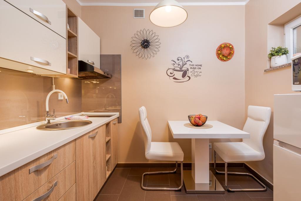 Read more Accommodation unitsInquiries and reservations are made via e-mail. For booking accommodation, we charge a 15% deposit, which is included in the final bill. Payment is made in cash directly to the owner. For stays of two weeks or more, we grant a 10% discount. The price includes apartment rental, use of all appliances, electricity and water consumption, TV, bed linen (sheets once a week, towels and tea towels twice a week), as well as final cleaning, tourist tax, use of the internet and air conditioning. In APP 1 and APP 3, an extra bed is charged additionally according to the price list. APP 2 and APP 3 are available for rent throughout the year, using the heating option for an additional fee of 10 EUR/day. Arrival time is after 2 pm, and departure time is until 10 am. We clean the apartment in accordance with the prescribed epidemiological measures.