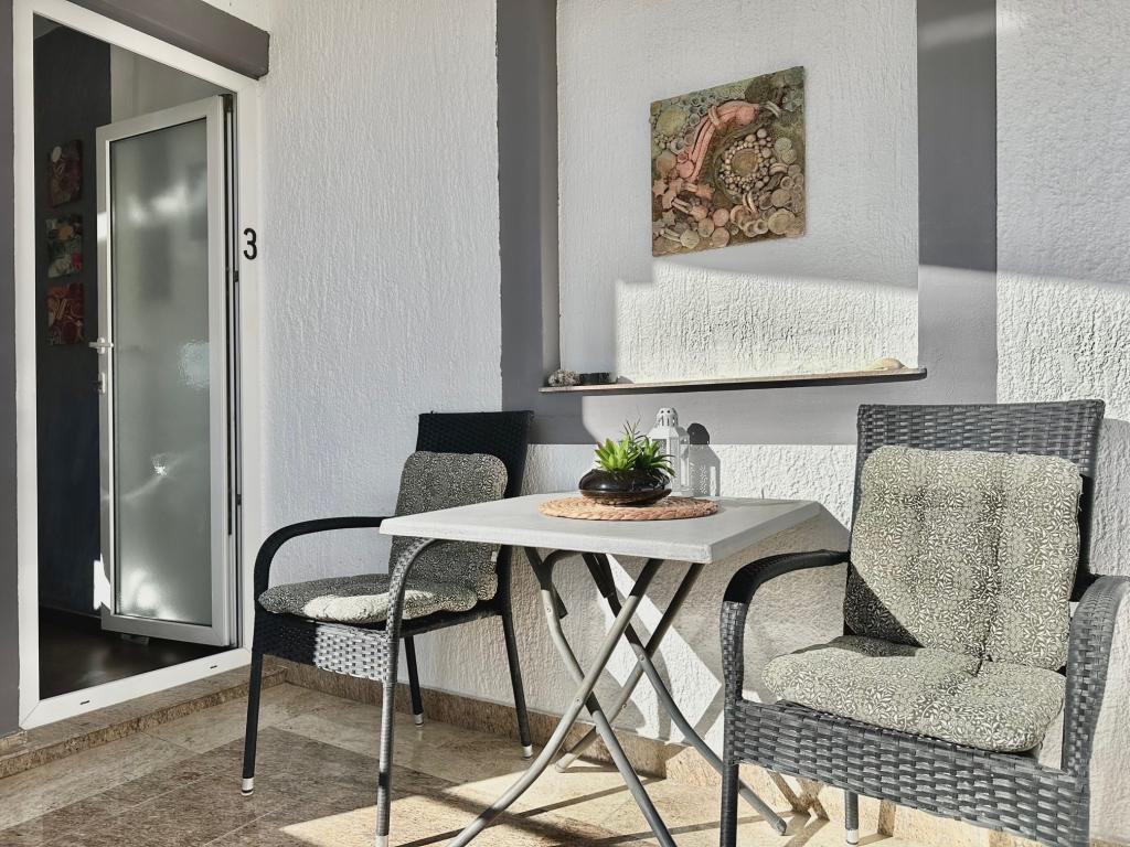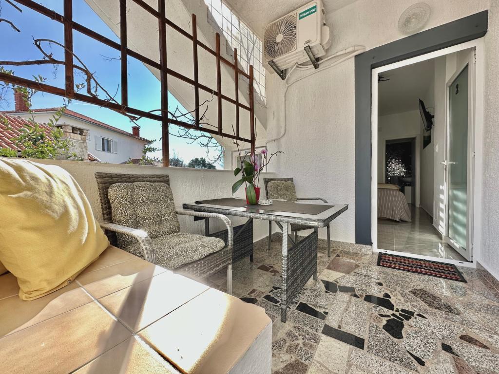 The house is situated at a very convenient location, in a quiet neighborhood, a few minutes on foot away from the beach and ten minutes walk to the downtown. The facility consists of 5 apartments. Three of them are studios for up to 2 persons, one apartment for up to 3 persons and a 75 square meters apartment for up to 5 guests. Each apartment has its fully equipped kitchen, lovely balcony or terrace, private entrance and secured parking space. A shared garden with barbecue facilities is at guests' disposal. ***Pets are welcome with a prior announcement and at an extra fee of 12 eur per day (payable on the spot).