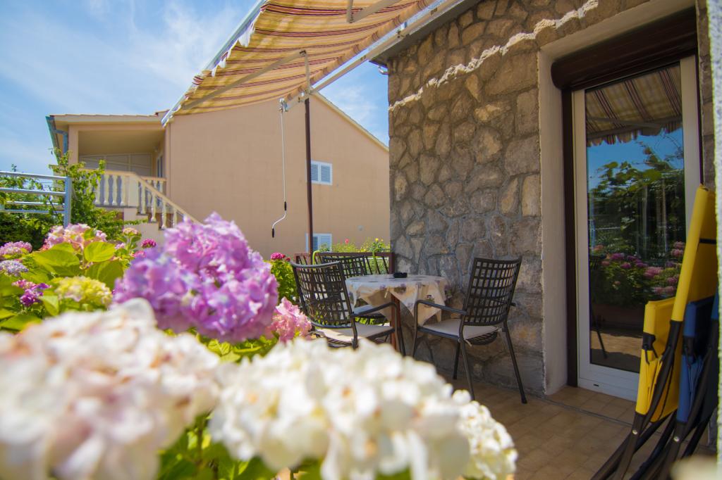 Our house with apartments is located in a quiet part of Krk. The apartments are located on the ground floor, next to each other. They are modernly equipped. Each has its own terrace, surrounded by hydrangea flowers. , overlooking the garden. Parking is in the yard, covered with awning. PLAV beach is a 2-3 minute walk from our house. The owners live on the first floor of the house.