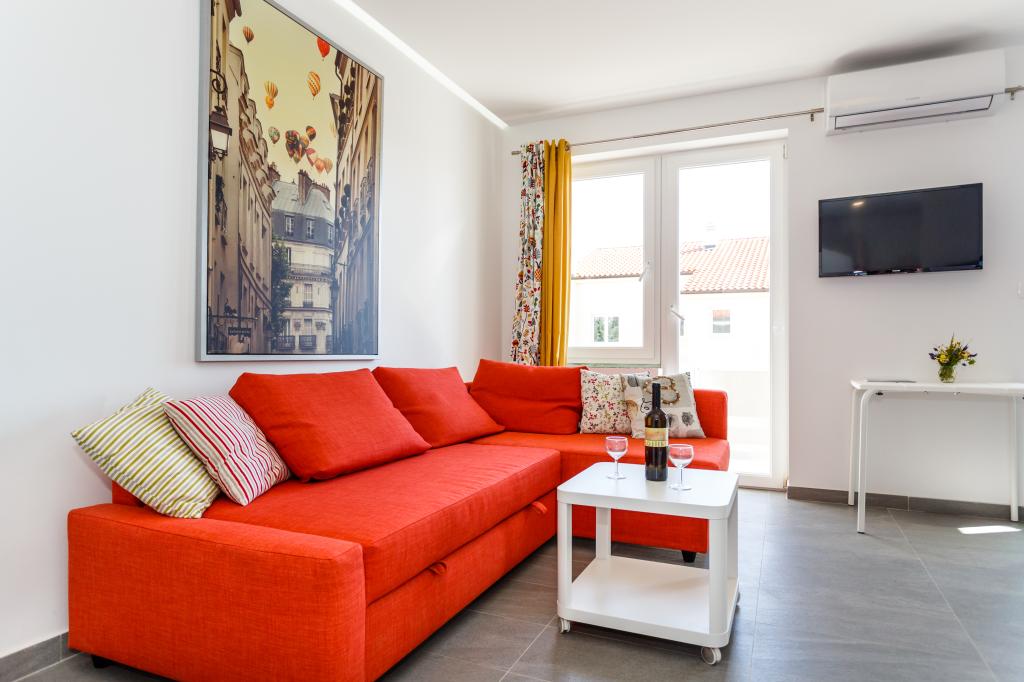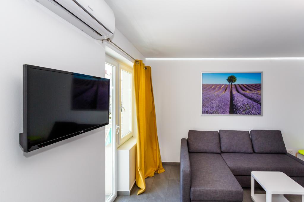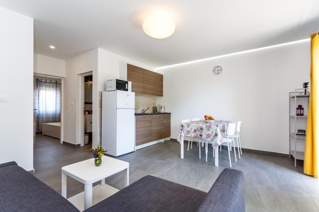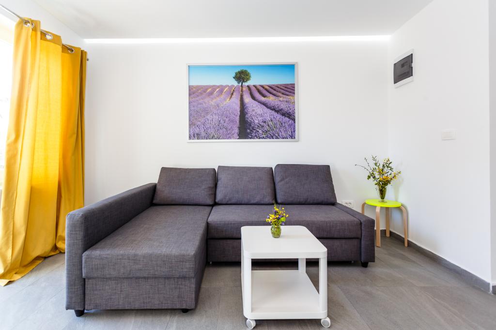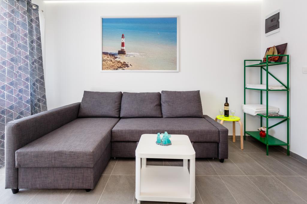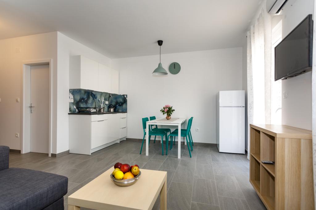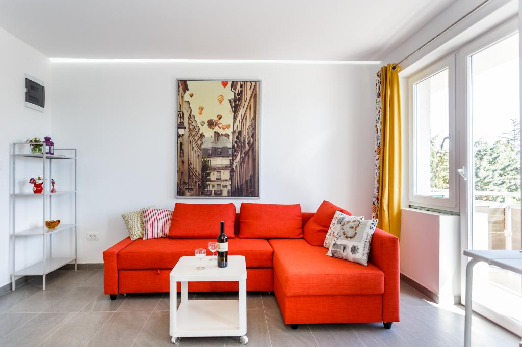 Hello! :) This is our brand new apartment located near the center of Krk (about 5 minutes walk). The apartment has one bedroom with a double bed, a living room with a sofa that can be converted into a double bed, a kitchen and one bathroom with necessary accessories. It also has a balcony, where you can enjoy the sun at any time of the day. We offer free parking space in the shade, free air conditioning, smart TV with Netflix, a BBQ grill in the garden next to the apartment and free WiFi.