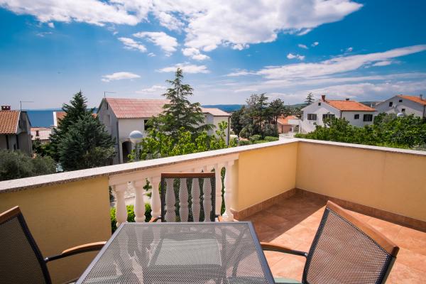 We rent 6 apartments for 2 - 6 persons in a quiet part of the town of Krk, above the hotel Koralj and only 200 meters from the pinewood beach. Three apartments are on the ground floor and have a sea view while the two apartments are on the ground floor. All apartments have cooling and heating and have their own parking space in the yard. Possibility of using barbecue on charcoal in the yard. The apartment is 15 minutes away by the sea from the center and within 400 meters there are shops, sports grounds and restaurants. Near the Krk - Malinska and Krk - Punat bicycle paths are 20 km long.