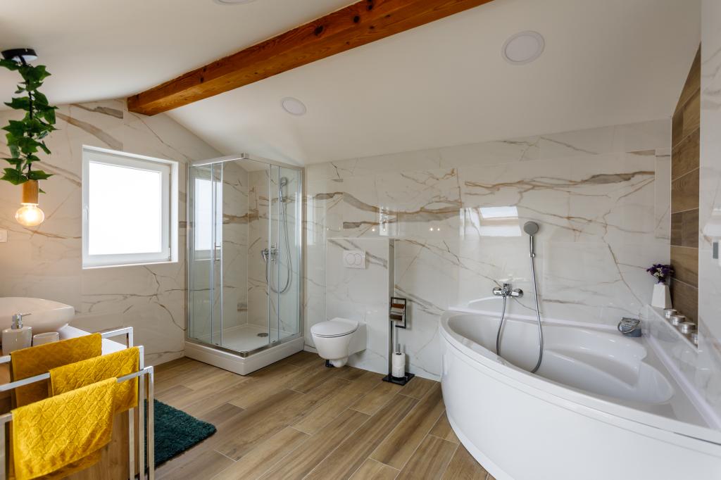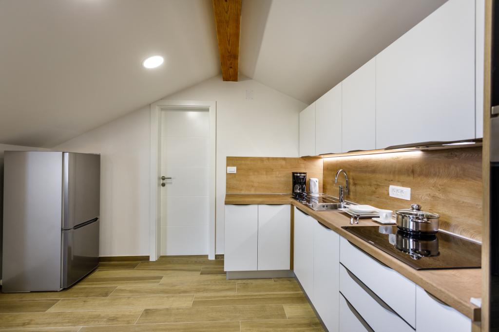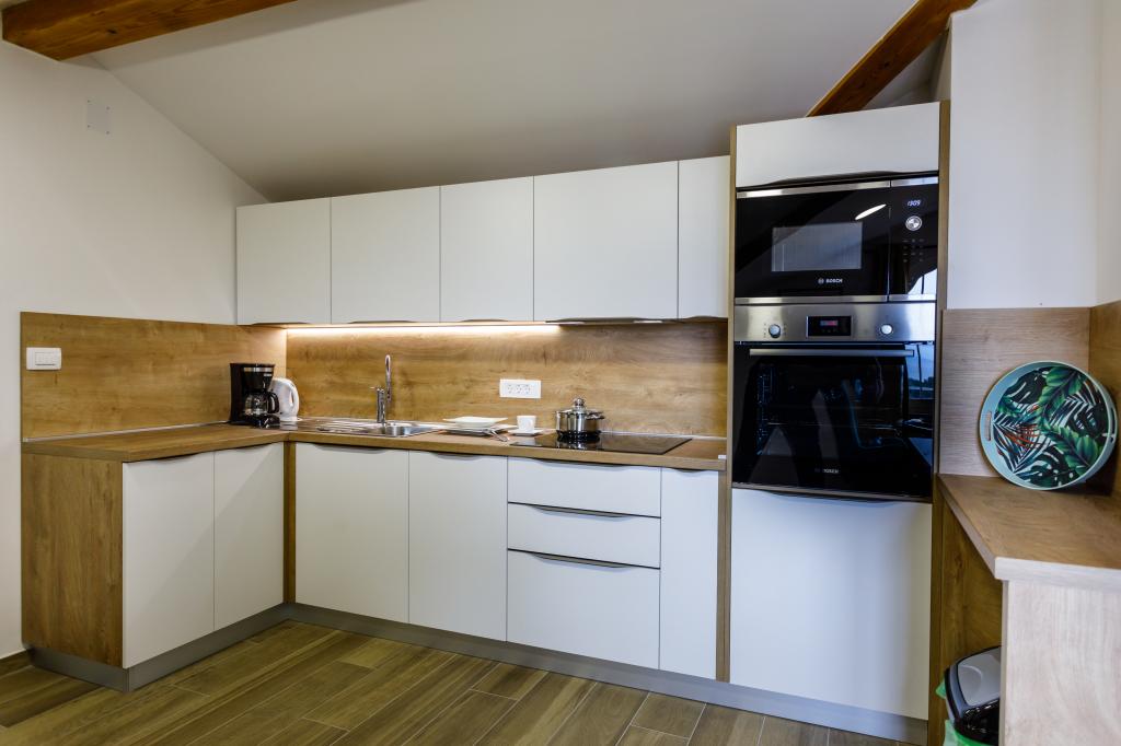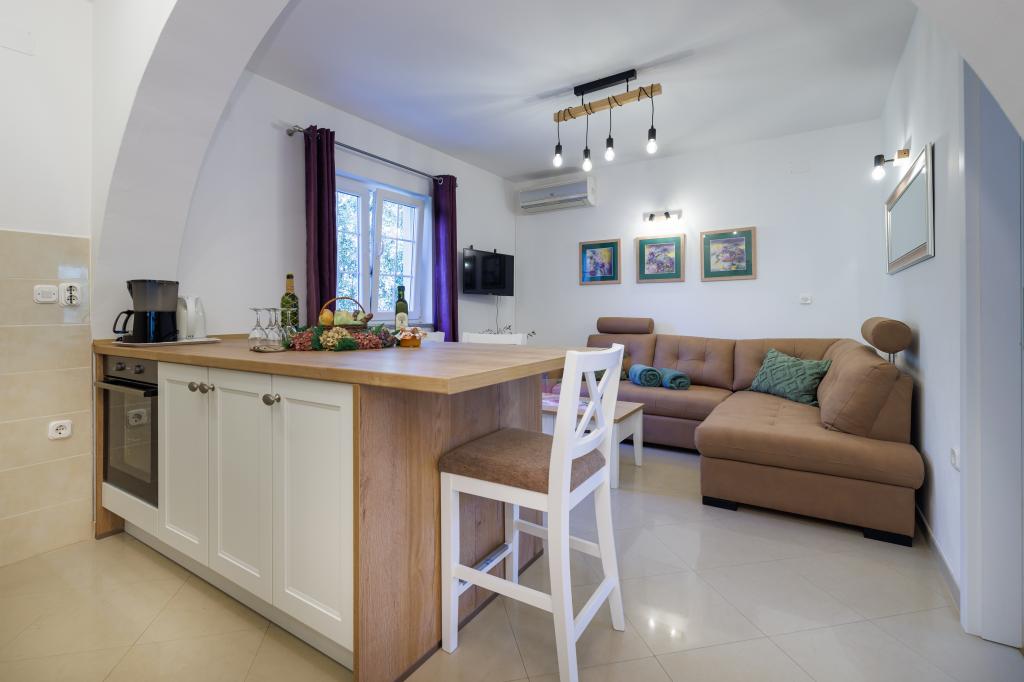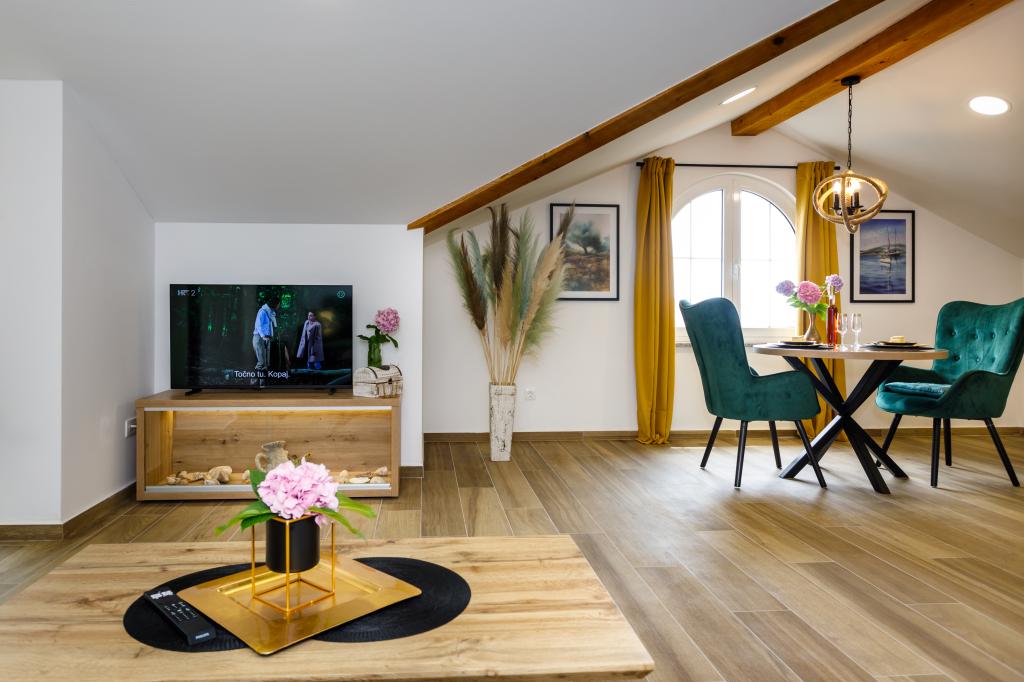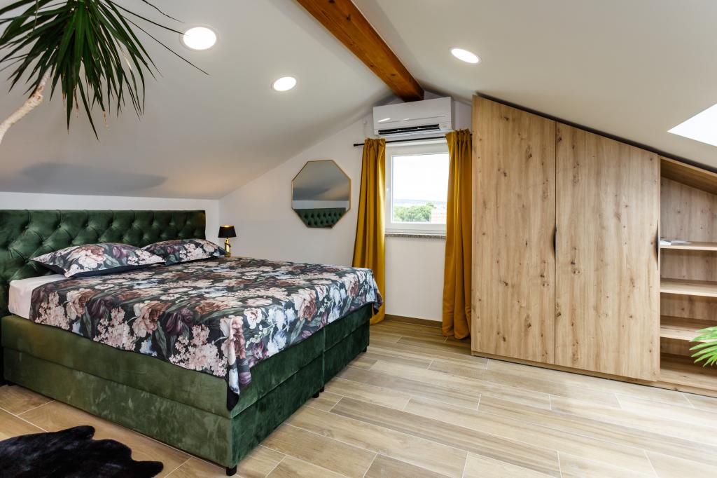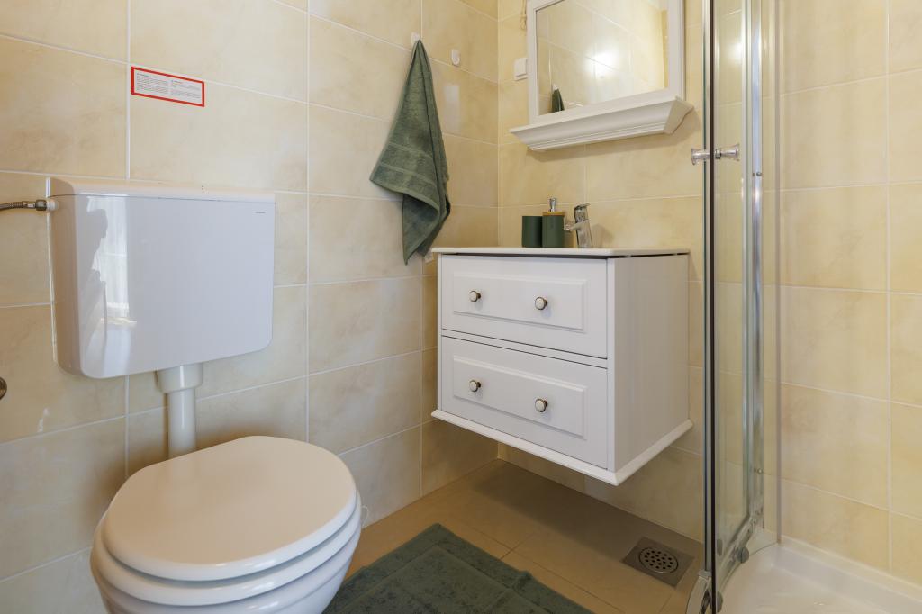 New modern apartments in a quiet and attractive location Krka with sea views. The house is located 300 meters from the beach and 700 meters from the center. The building has its own parking and garden. The apartments are well equipped and comfortable for your stay.