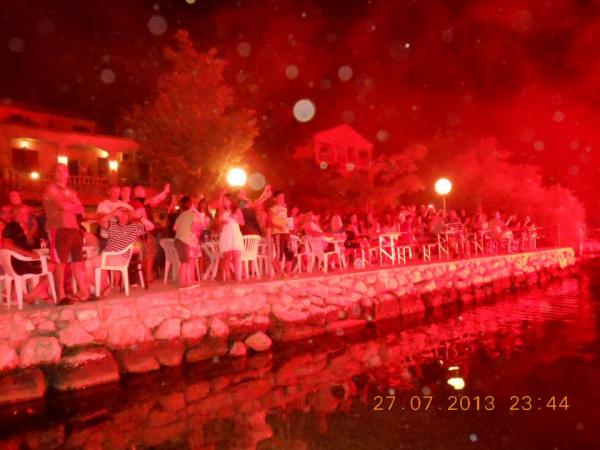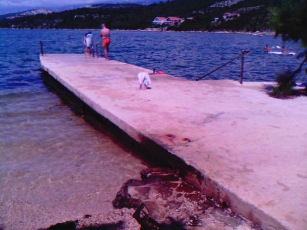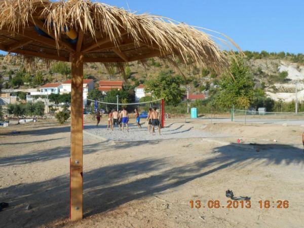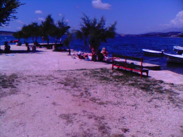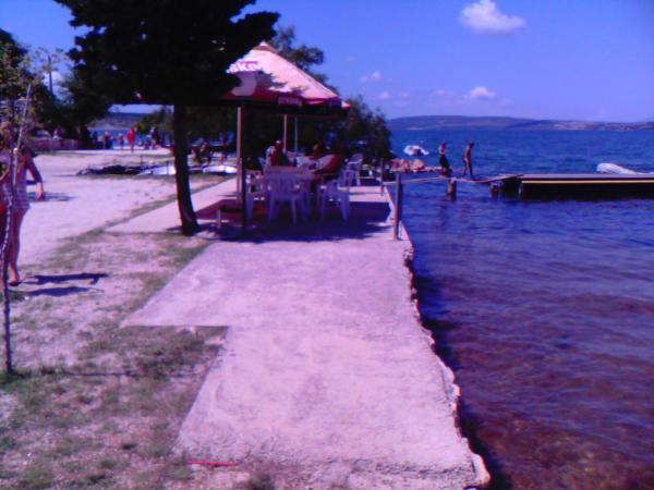 On the beach there are facilities for: football, tennis, bagminton, swings for children, bowling area. The beach itself has a slight entry into the sea (for children and inferior swimmers) and is covered with gravel. There is also a part of the rocky beach with less and more depth for diving and where there are stairs to get out of the sea. The beach also has a natural part with a rocky coast, where swimming and sunbathing are also possible. Caffebar right on the beach. 1000 m away is the mouth of Zrmanja where rafting is possible. The beautiful Cerovec Caves (17 km) with stalactites. Visit to Zadar with many museums and antiquities, sea organs (as a rarity in the world) and greetings to the sun (30 km). Plitvice Lakes about 70 km away. Paklenica National Park, Krka waterfalls. .