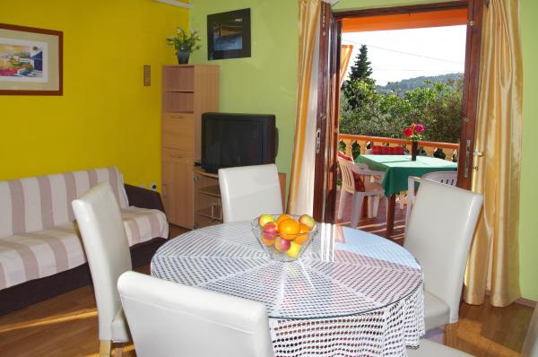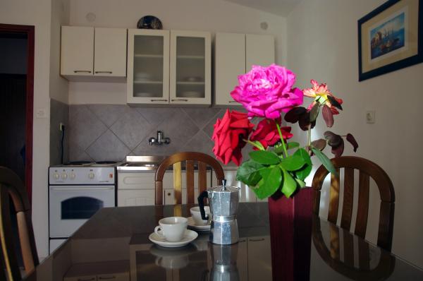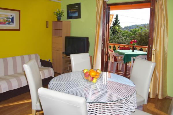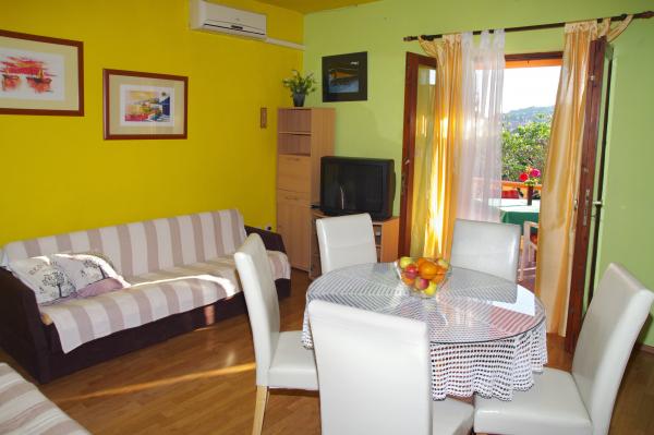 Apartments Tereza are situated outside the center of Kukljica, Gnjojišće bay, in a quiet area surrounded by pine trees. With spacious ests see the beach and sea. When it comes to the house and parked the car can all be done on foot. Buying food at the market and shop, dinner in a restaurant, work in mjenjačnicci and mail, and the beach is just a few steps. I make coffee, prepare cake and handing them to the beach in a shady spot. Under the shade of a pine close to the sea you enjoy the waves and drinking coffee. The house has a large fireplace and a table in the shade of a fig tree. The ambiance is perfect for a garden party. For those who love cycling can choose paths through the pine forest or bike paths along the coast and to neighboring towns. The promenade along the sea is 80 meters.