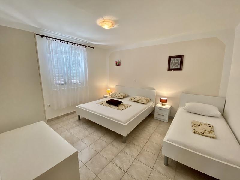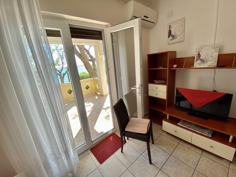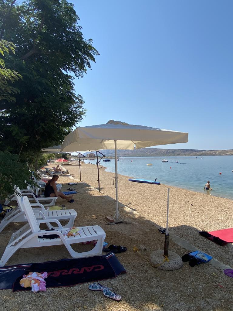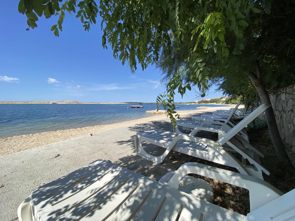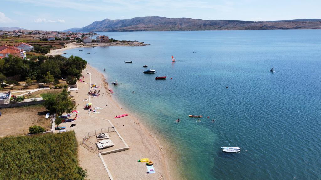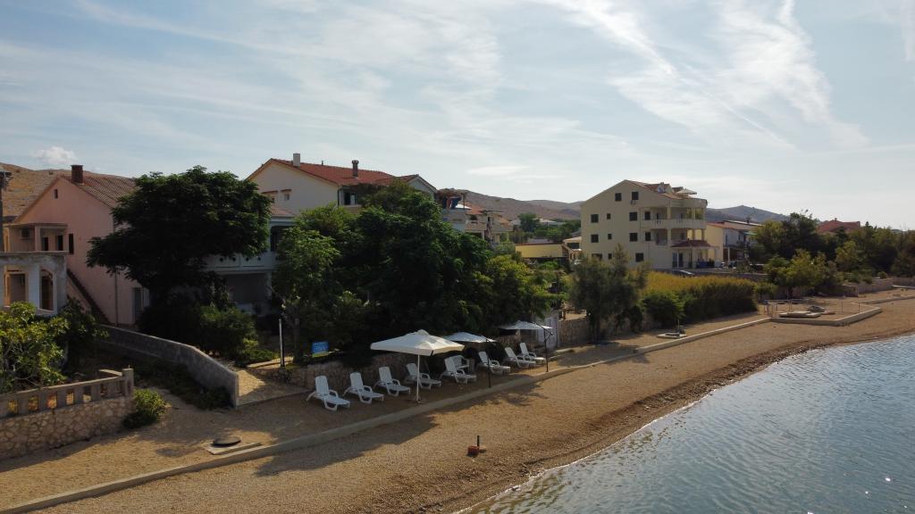 Possibility of using a shared barbecue in the yard. Possibility of using an outdoor shower. All apartments have a parking space that is included in the price of the apartment. More details can be found on the website: www. ana-frane-pag. com Distances: Town center: 100 m Beach: 10 m Shop: 500 m Restaurant: 50 m ATM: 500 m Pharmacy: 5 km Bus station: 5 km
