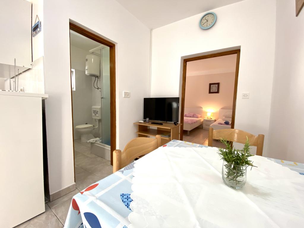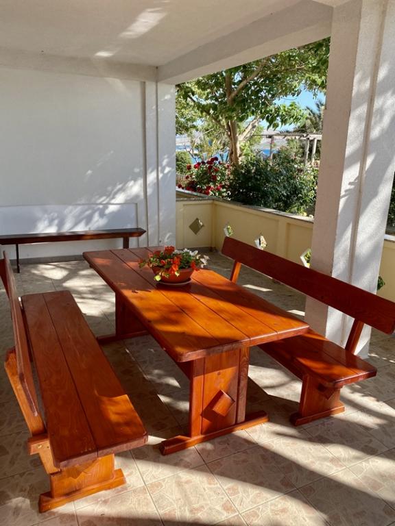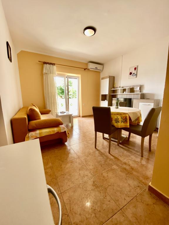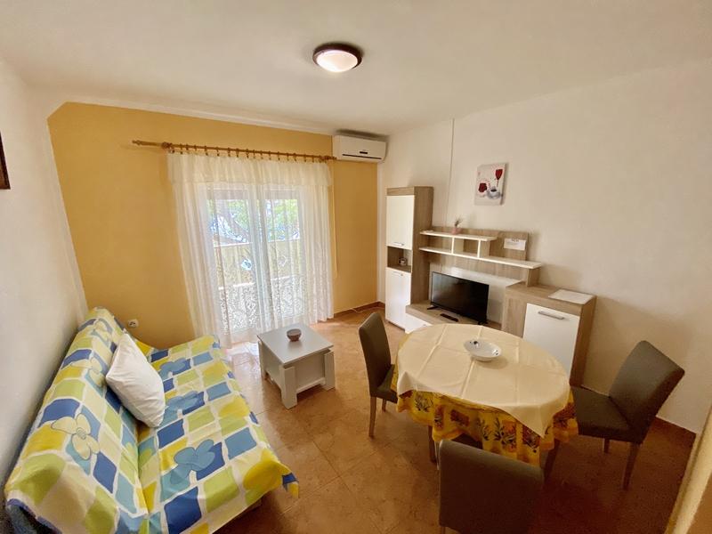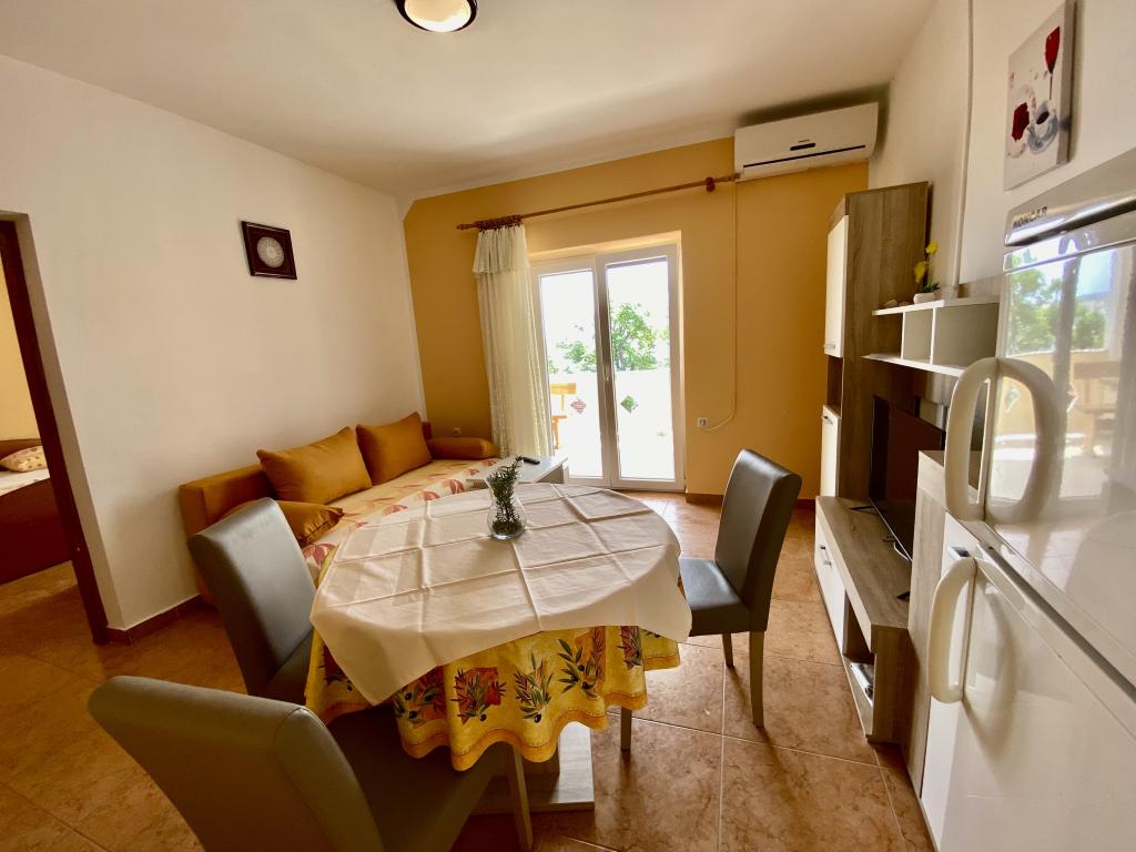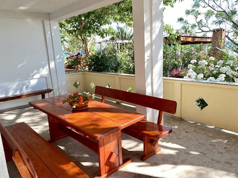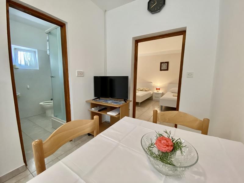 Possibility of using a shared barbecue in the yard. Possibility of using an outdoor shower. All apartments have a parking space that is included in the price of the apartment. More details can be found on the website: www. ana-frane-pag. com Distances: Town center: 100 m Beach: 10 m Shop: 500 m Restaurant: 50 m ATM: 500 m Pharmacy: 5 km Bus station: 5 km