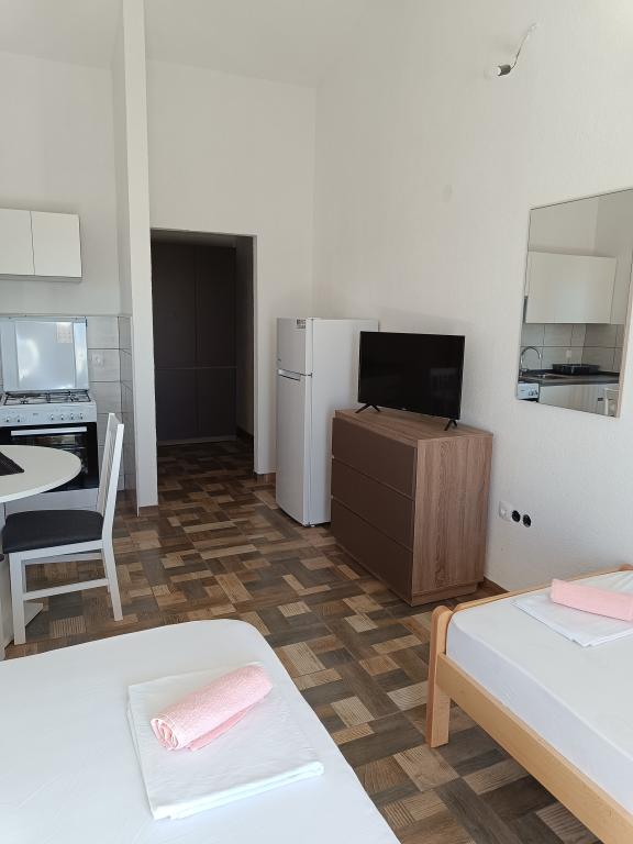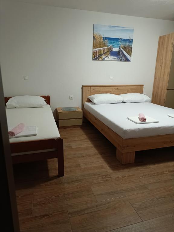 Leonard Apartments We are located in a small and quiet place Kustići! We offer new and fully equipped apartments with parking. Each apartment has air conditioning, Wi-Fi, bedding, TV, fully equipped kitchen and terrace. The beach is 20 meters away, and shops, restaurants and a bakery are in the area of the apartments! The town of Novalja is 6 km away! We also have moorings for boats that are 20 meters away from the apartments!