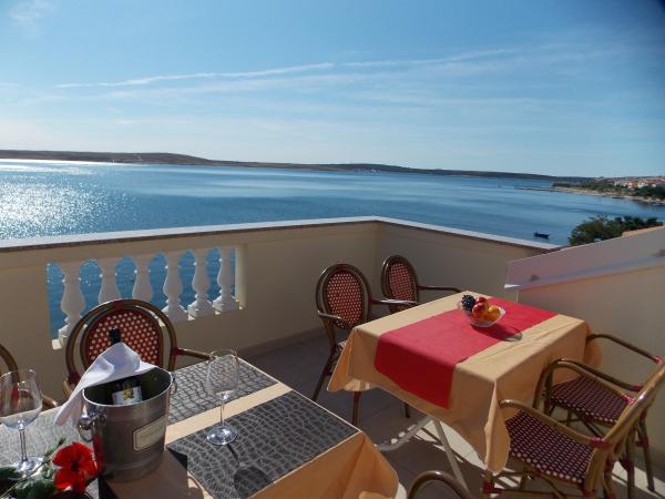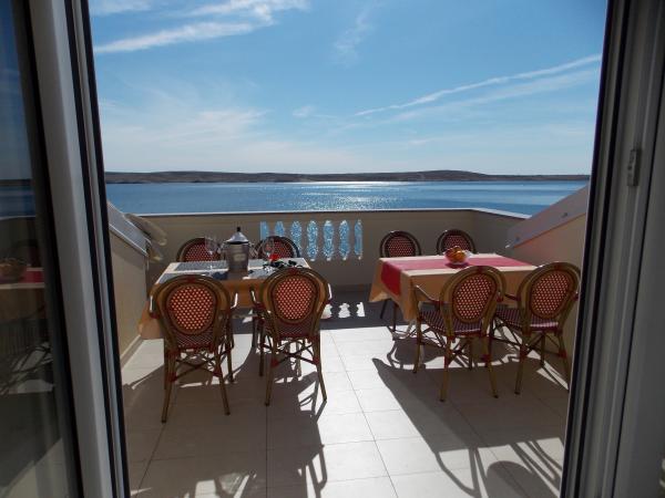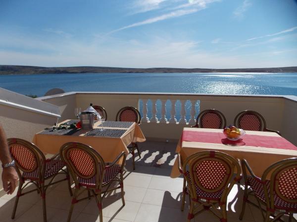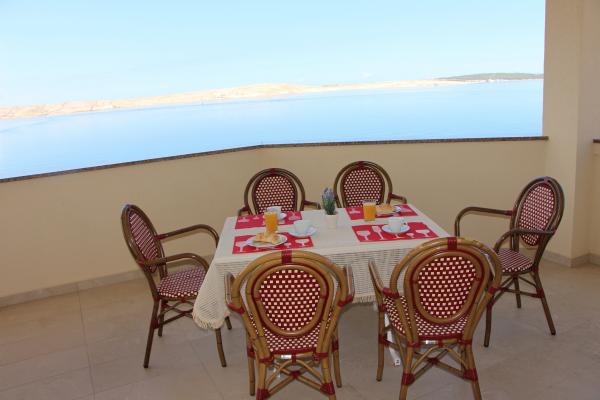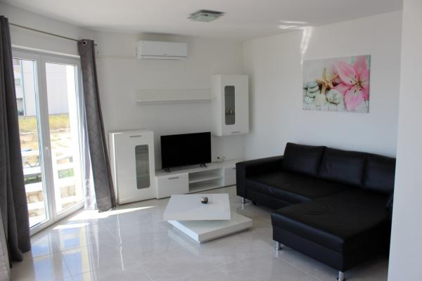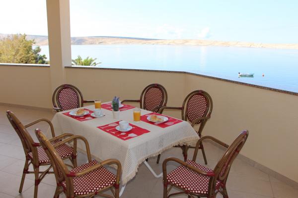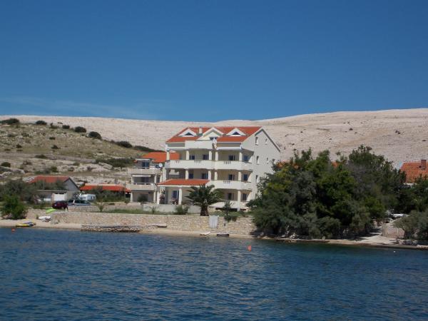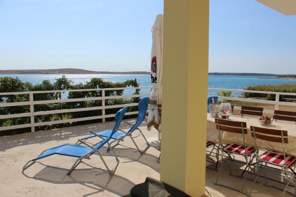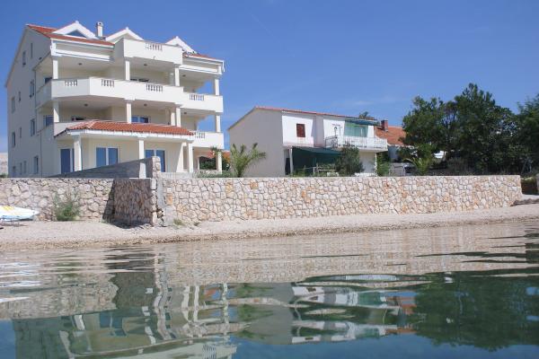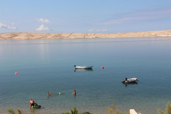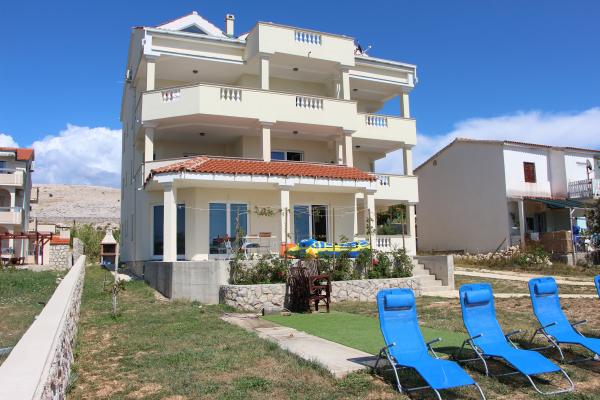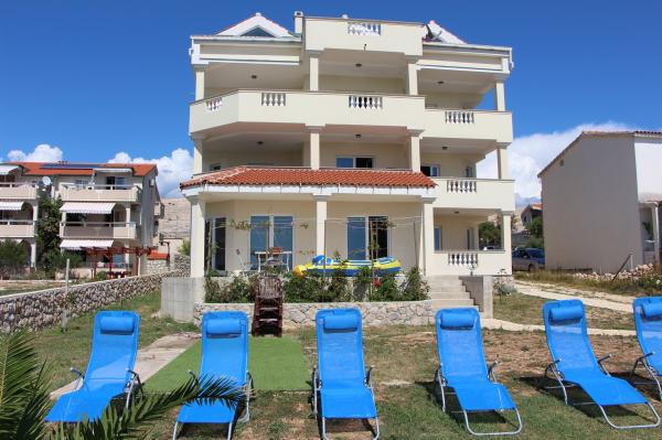 Fully and modernly equipped apartments are located in a newly built house only 20m from the sea. All apartments have large terraces that offer a beautiful view of the Bay of Pag and an unforgettable view of the sunset. The house has a large garden and private parking. The private sandy beach flows into the house and forms its integral part. Therefore, the property is ideal for families with children, who are welcome here. The town of Novalja is 5 kilometers from the house, where all amenities (cultural, sports) are located.