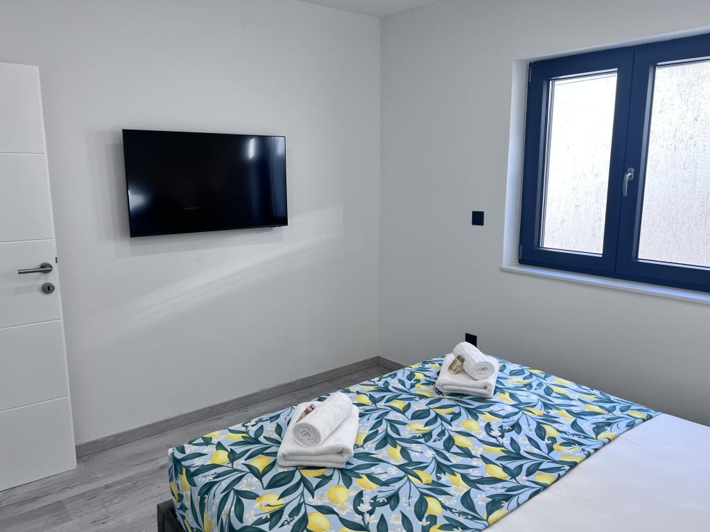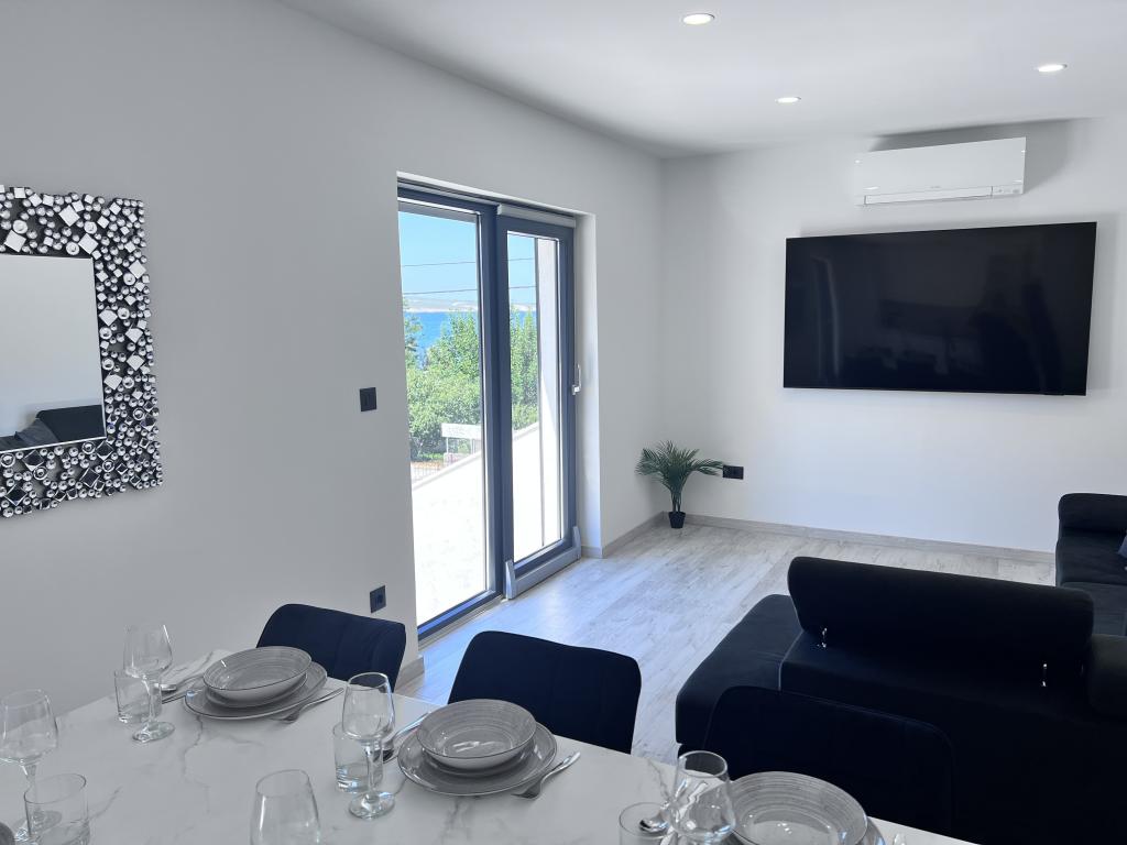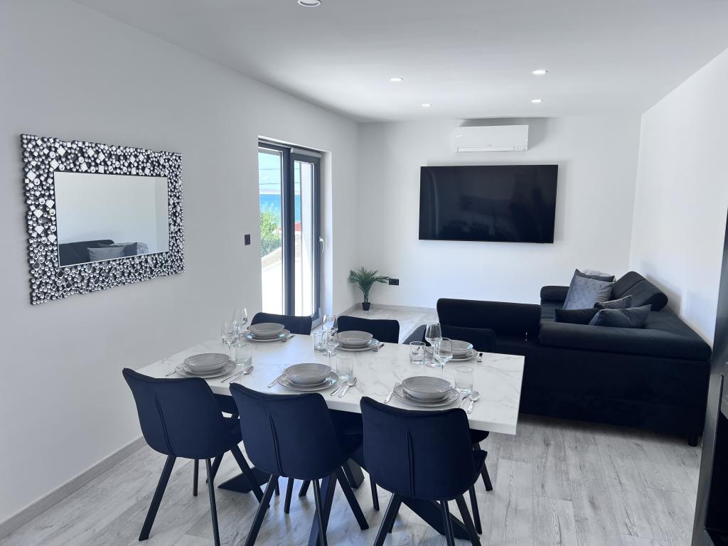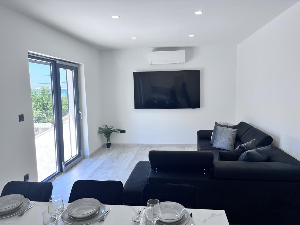 Villa Bella 2 is located in a small and quiet place Ljubač just 16km from Zadar. Brand new and modern apartment with two bedrooms. The apartment is on the first floor and has a beautiful sea view. Each bedroom and living room has its own TV and air conditioning, washing machine and dishwasher, induction hob and oven, microwave, wifi, Netflix, large side by side refrigerator, grill and outdoor shower. Free secured parking in front of the house. Large covered balcony with outdoor table and chairs Small shop just 30m from the apartment. The price includes tourist tax and final cleaning. For stays of more than 10 days we give a discount.