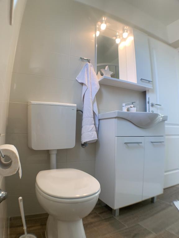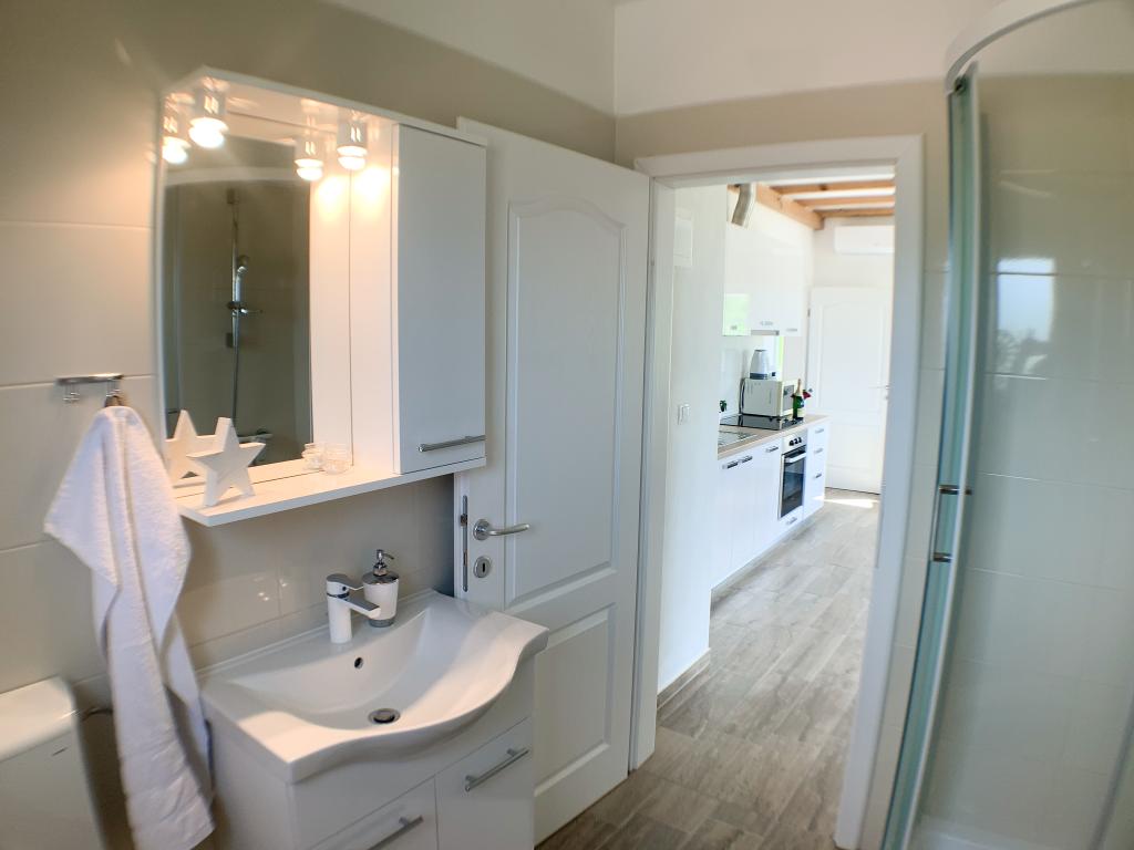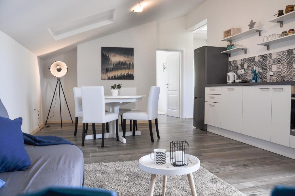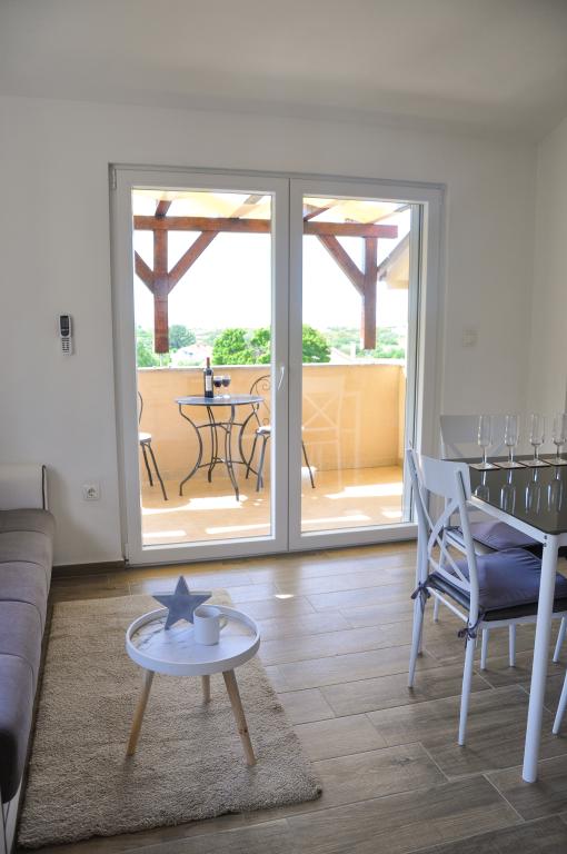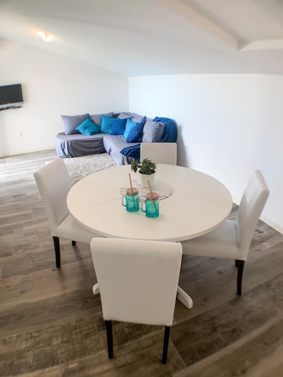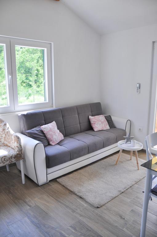 Apartments Carnizza offers a large courtyard with free and covered parking and a children’s playground for football, volleyball and swings. They also offer space to walk around the house. The house is located in a quiet environment, and the view is directed to the sea and Velebit.