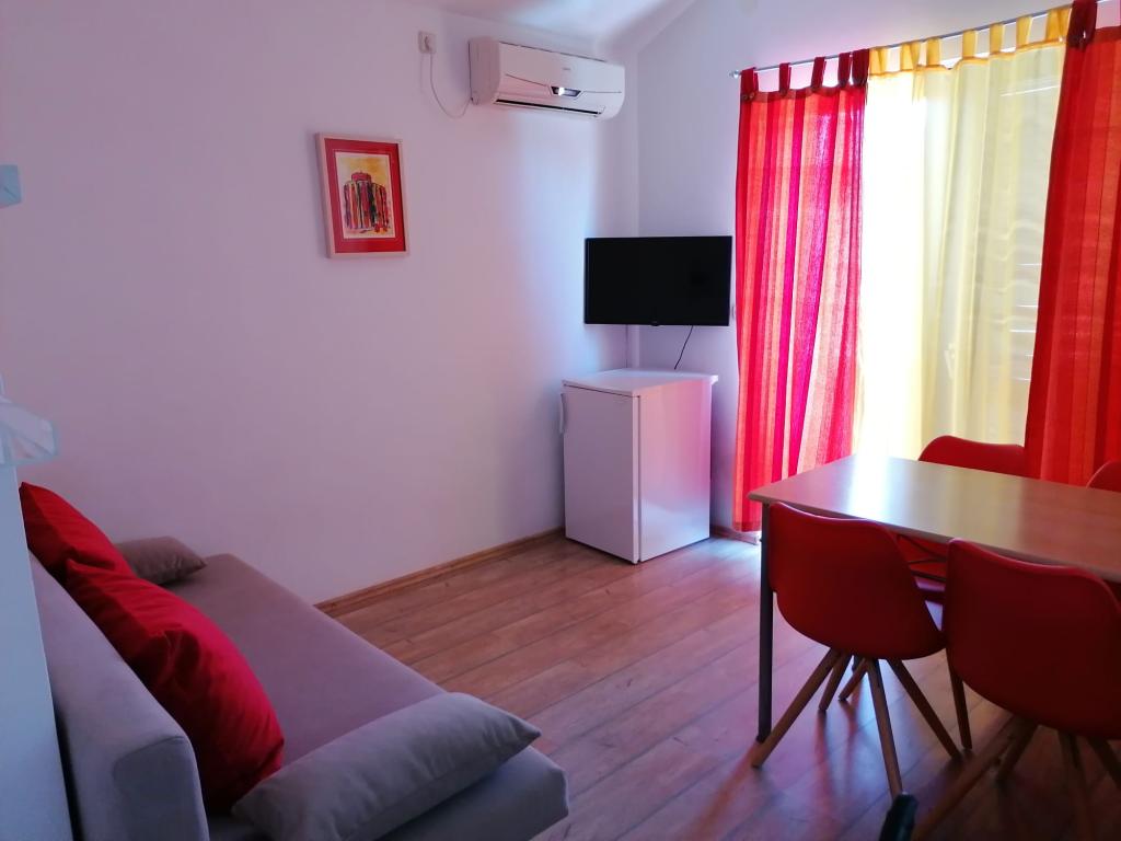 Apartment are very cozy, clean and nice ... Air conditioned, with fully equipped kitchen, wonderful view from the terrace in the morning and at sunset. The sea is just beyond the fence, sandy beach is "two steps" away. Owners are very nice people. Shop is in the area. I recommend this place to all and greetings to the hosts. Guests from Poland