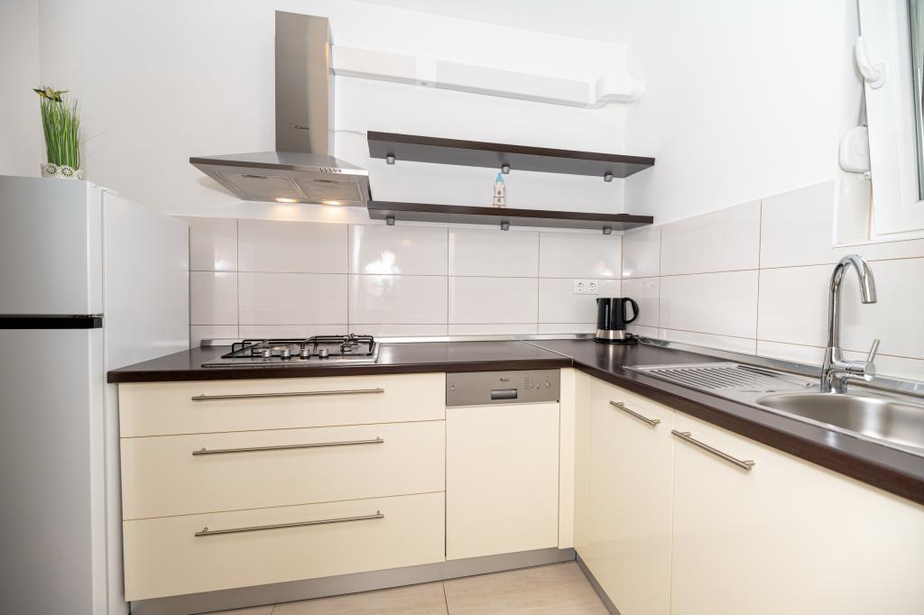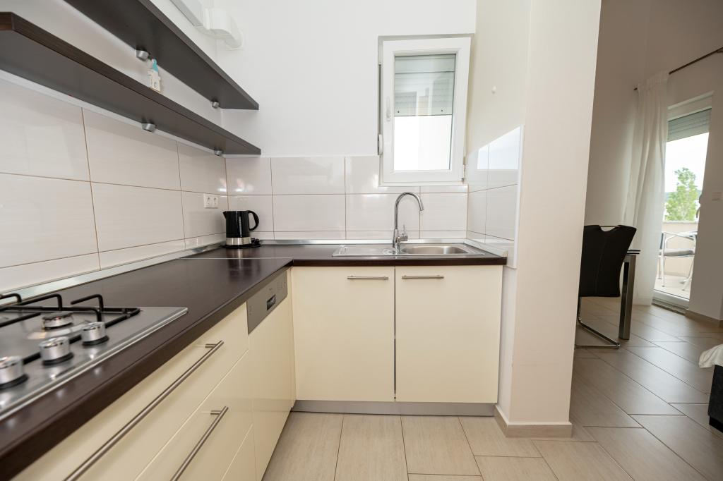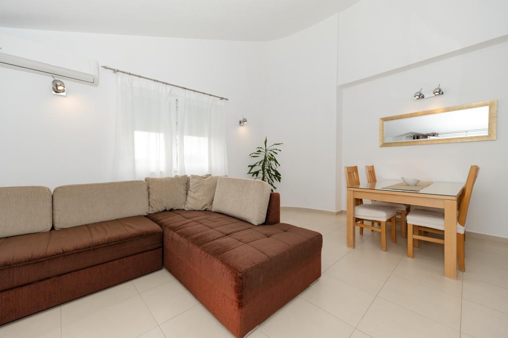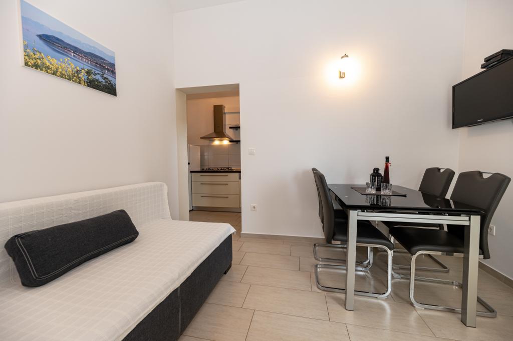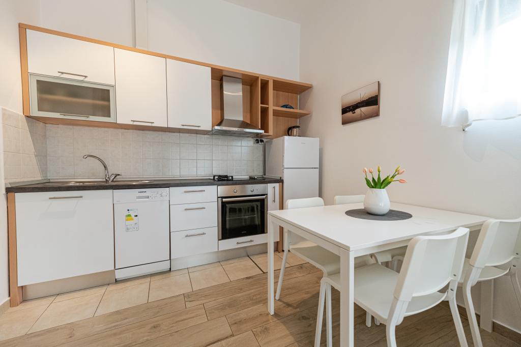 The apartment is well equipped, very clean, well-kept surroundings. The owner is very friendly and helpful. In the inn, which is part of the apartments, excellent, very tasty pizzas. The beach right in front of the apartments, very suitable for small children. A very quiet village for a peaceful, relaxed holiday. Excellent, kudos.